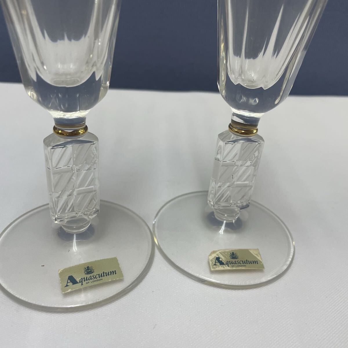【中古】アクアスキュータム(Aquascutum)シャンパングラス ペアセット 口径(約)6cm×高さ(約)20cm 長期保管品◆D7-030
