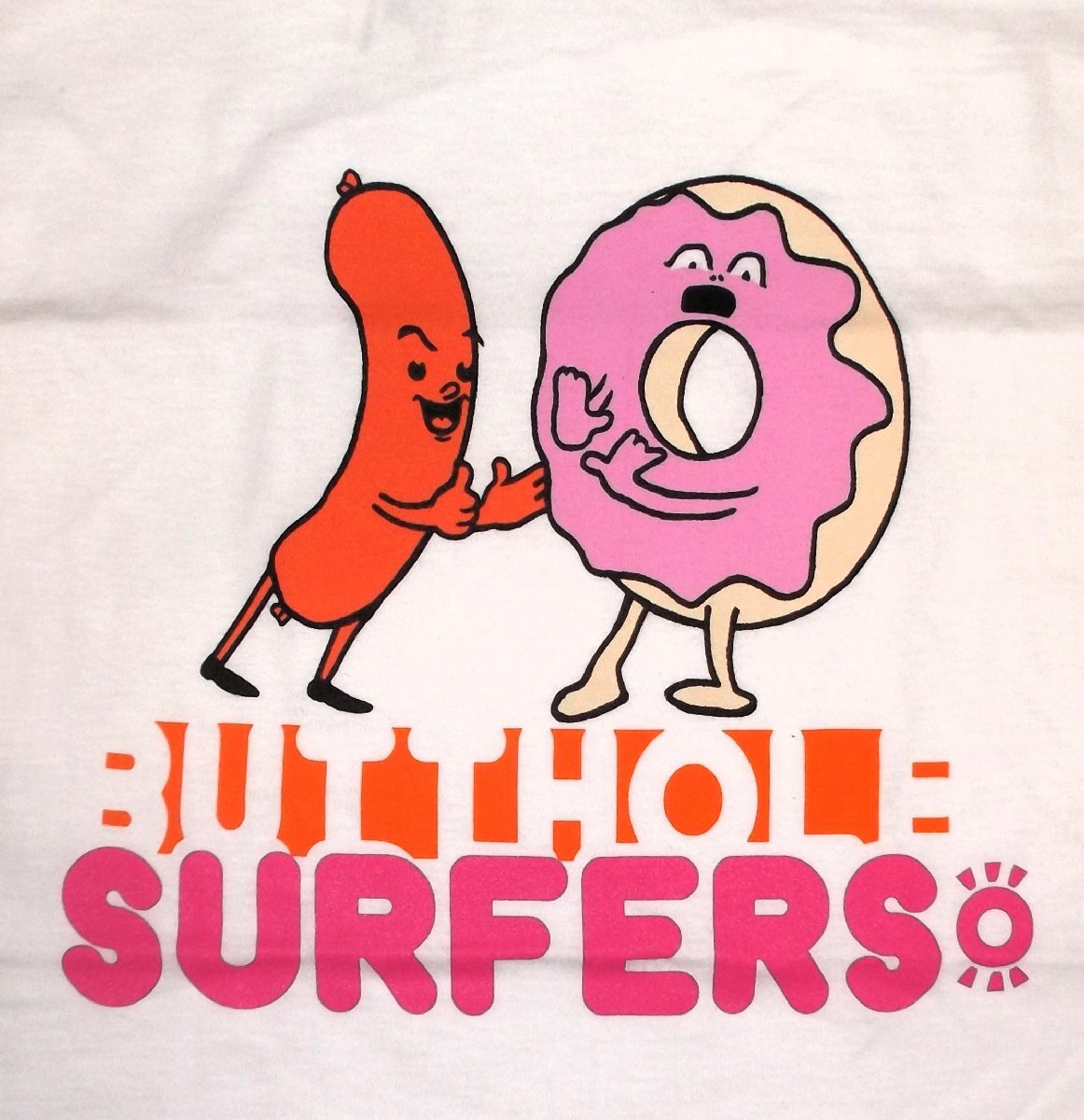 | Butthole Surfers True Romance (White) T-shirt/ 正規品 Back in the early dawning of the Butthole Surfers, young Gibby gave young Paul a t-shirt featuring a creepy hot dog making a move on a nervous donut. This is not that shirt, this is just a tribute. Printed on a white heavyweight cotton t-shirt. 大胆不敵な変態フロントマンであるギビーヘインズ率いる、アメリカ・テキサスの狂気あふれる変態パンク/ロックバンド「バットホールサーファーズ」のTシャツ「Psychic Powerless」です。 SCRATCH ACIDやBIG BLACK、FLIPPERなどと同時期に、グランジムーヴメントのルーツ的な存在であり、 アシッドサイケ、テキサスサイケ、ノイズ、ロカビリー、アヴァンギャルド、ファンク、ヒップホップ etc と形容しがたい音楽性、 酒とドラッグにまみれたイカれ具合と喧騒、奇行が繰り広げられるライヴは あのボアダムスにも多大なる影響を与え、インディシーンではカルト・ヒーローとして唯一無二の存在として伝説と化しています!! 2001年リリースのシングル「Dracula From Houston」から派生した、ドーナッツに迫るソーセージ,DUNKINライクな配色にポップなカートゥーン・キャラクターながら、モチーフもヤバめなデザインです!! 新品・正規品 Mサイズ 170cm~175cm位の方に良いかと思われます。肩幅48cm、着丈73cm、身幅50cm 多少の誤差はご容赦ください。 メール便送料¥250(代引き不可・紛失補償なし) LUCKY13、MOONEYES、Sailor Jerry等~企業ロゴ・アメキャラ等ライセンスTシャツ、RATFINK関連品、バンドTシャツ等取り扱っております。 ** 他にも色々出品中です。 CWBT IWTS | |||||||