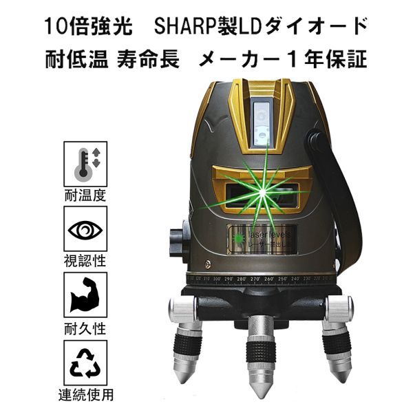 ・傾斜アラーム:本体傾斜角±3°でレーザー光点滅