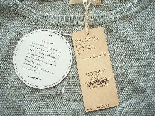スタディオクリップ★オーガニックコットン12Gボタニカルダイプルオーバー・グレー★タグ付き