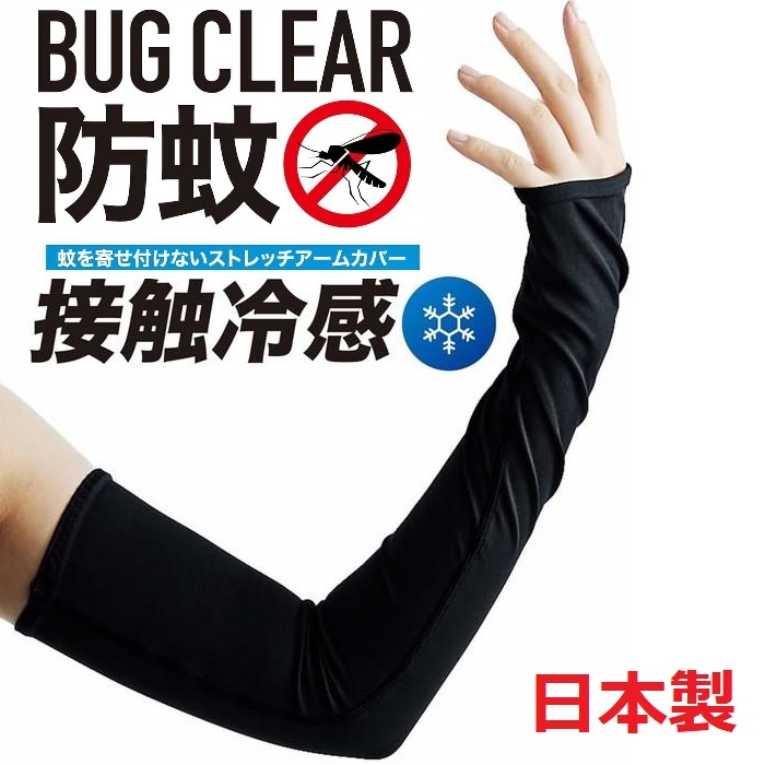 アームカバー 女性用 蚊を寄せ付けない JW-637 接触冷感 吸汗速乾 UVカット UPF50+ 防蚊 日本製 おたふく手袋 手の甲までガード