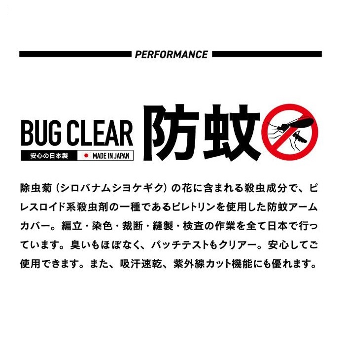 蚊を寄せ付けない。洗濯60回後の効果テスト済み。