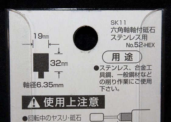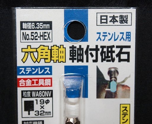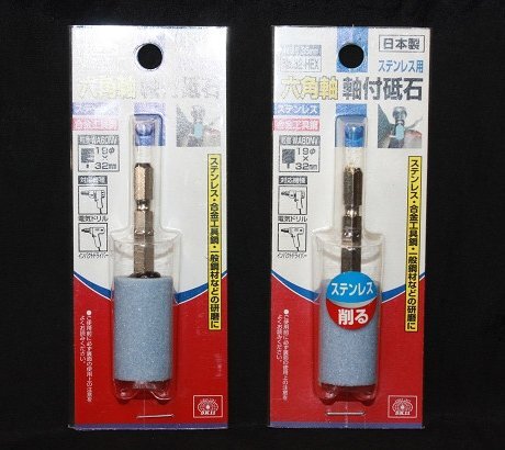 送料無料 未使用 2点セット ステンレス用 六角軸 軸付砥石 19Φ×32mm No.52-HEX 日本製 WA60NV 合金工具鋼 電気ドリル SK11