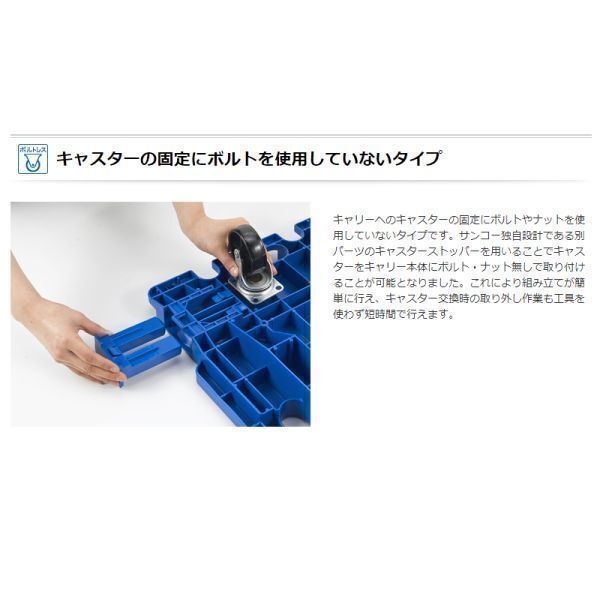 汎用的に使用可能な平台車です 連結や安定した段積み機構など優れた特徴を有しています 縦・横の連結可能/クロス積み可能/棒積み可能 6色の豊富なカラー展開で使用場所で使い分けできます 軽く静音性に優れた高寿命もエアーキャスターを標準装備 キャスターの固定にボルトを使用していないボルトレスタイプ 【商品詳細】 メーカー品番:802462-11 外寸:680×390×130mm 耐荷重:120kg(均等荷重) 材質:PP(ポリプロピレン) 製品重量:2.76kg キャスター:Φ75X4輪自在グレーゴム車(エアーキャスター) キャスタータイプ:エアーキャスター標準装備・ボルトレス仕様 カラー展開:ブラック/ブルー/ライトグレー/グリーン/レッド/イエロー ※こちらの商品ページは【ブラック】です 製造国:日本 製造メーカー:三甲株式会社 JANコード:4983049004931 |