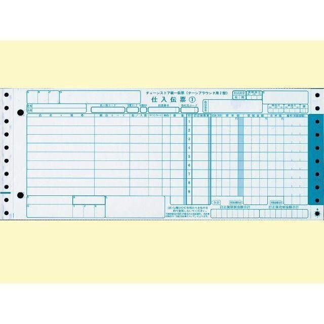 チェーンストア統一伝票|EOS伝票|ターンアラウンド2型|連続用紙 ■販売メーカー■ Hinode ■商品名■ チェーンストア統一伝票(EOS伝票) ターンアラウンド2型 5P ■統一伝票型番■ 89981 ■商品詳細■ 【サイズ】 12×5(305×127mm) 【ミシン目切り離し後のサイズ】 11X5(279X127mm) 【5枚複写 詳細】 1枚目…仕入伝票 2枚目…仕入伝票 3枚目…仕入伝票 4枚目…物品受領書 5枚目…納品書控え ●2穴バインダーにファイルできます。 ●EOS伝票 ●連続用紙 |
