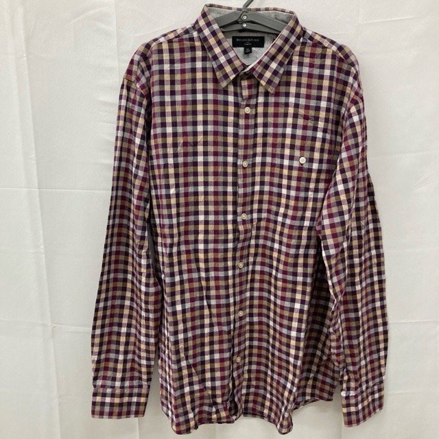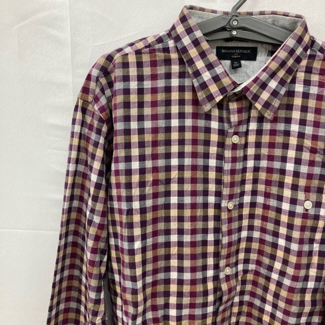HH198 バナナリパブリック XL アメリカ古着 チェック柄 長袖シャツ マルチカラー レッド系 BANANAREPUBLIC メンズ