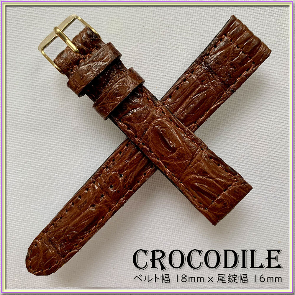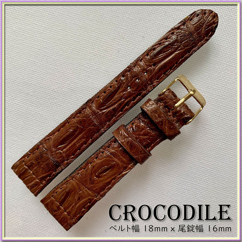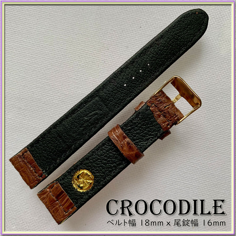 18mm 本革 クロコダイル ワニ革 時計ベルト 別注 イタリアンブラウン ITALIAN BROWN 高品質 背ワニ模様 限定 職人技 金箔刻印