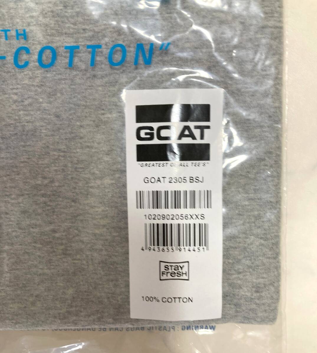 XXSサイズ 新品 グレー ユニセックス【GOAT/ゴート】100%コットンLONG SLEEVE TEE 7オンス / 長袖Tシャツ 品番10209020