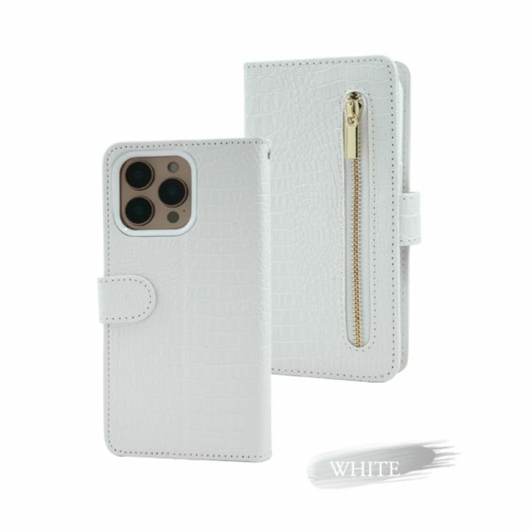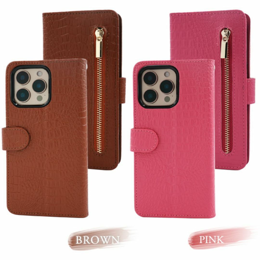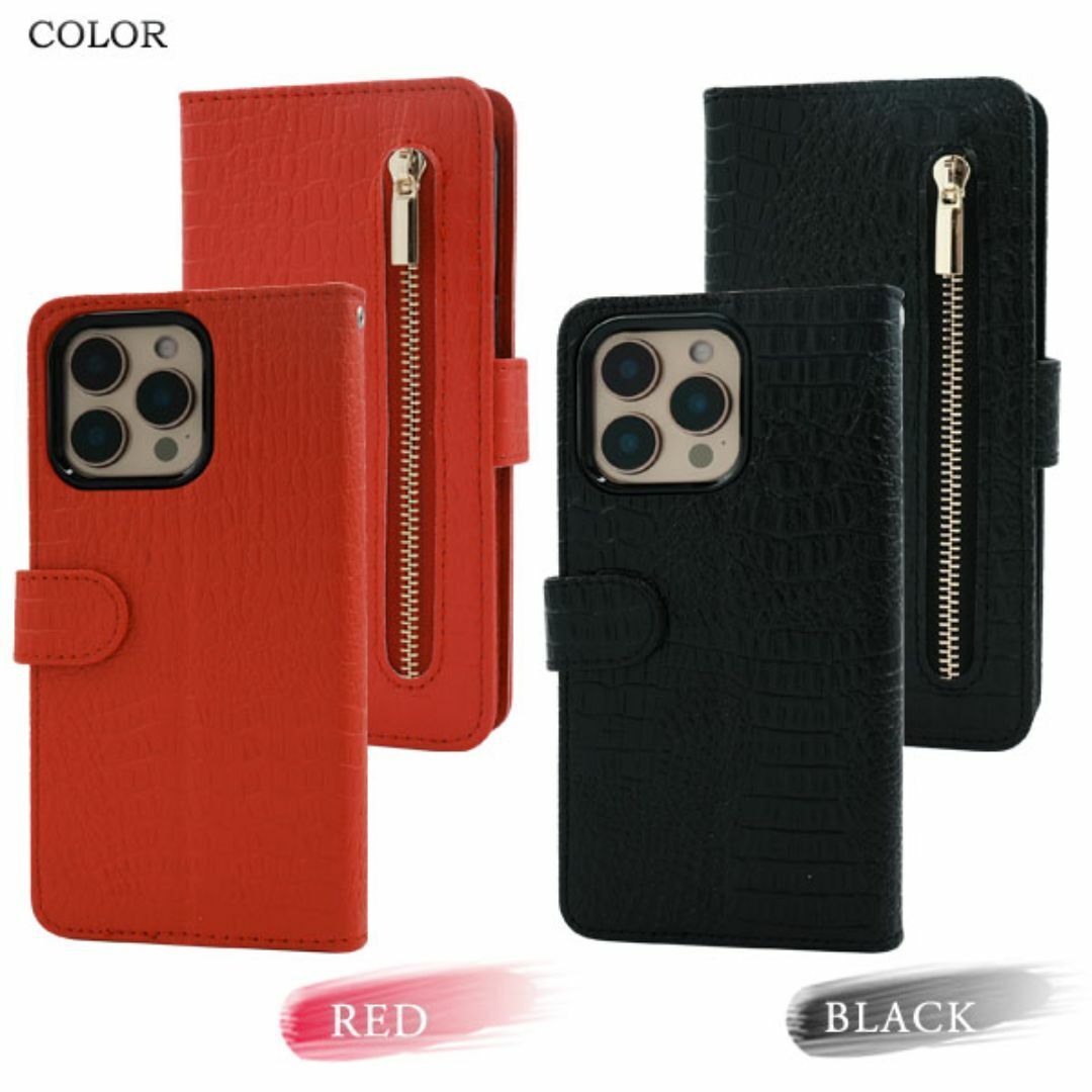 クロコダイルレザーデザインの手帳型ケース。