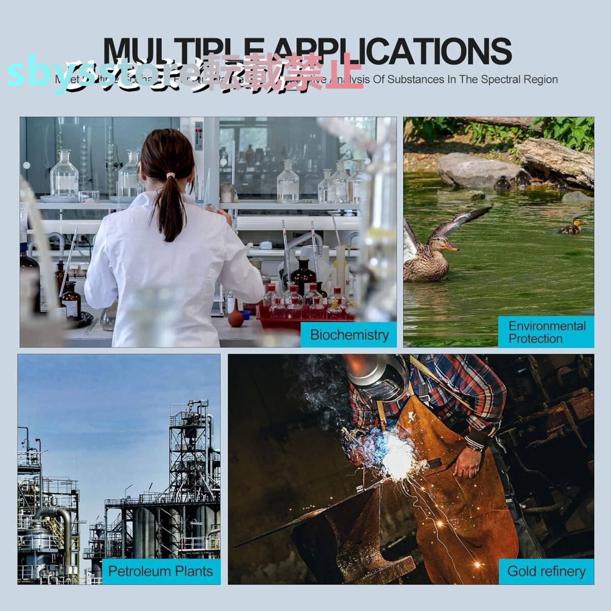 幅広い測光アプリケーション: 分光光度計の測光範囲は0~200%T、-0.3A~3Aで、研究、臨床診断、食品・飲料、医薬品、水質分析などの品質管理など、幅広い用途に適しています。