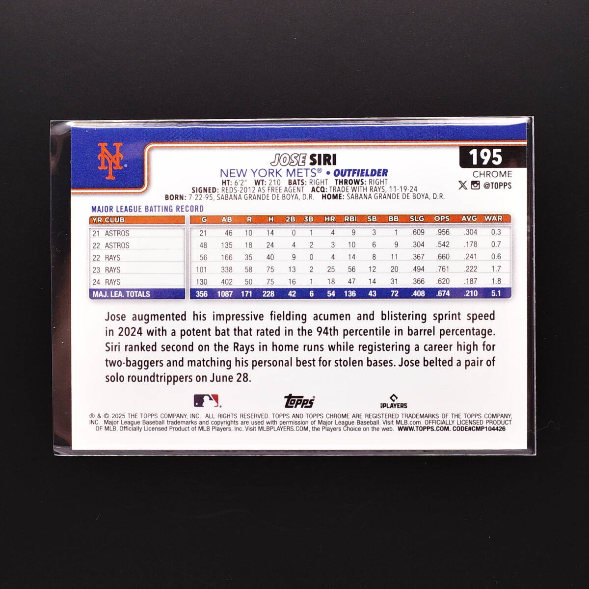 Raywave Refractor★2025 Topps Chrome Jose Siri #195 New York Mets◆ニューヨーク・メッツ MLB Major Baseball 野球 card トレカ カード