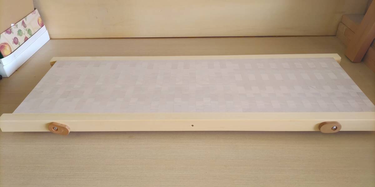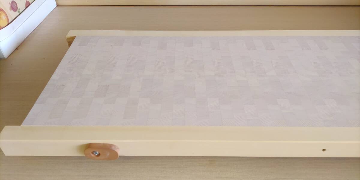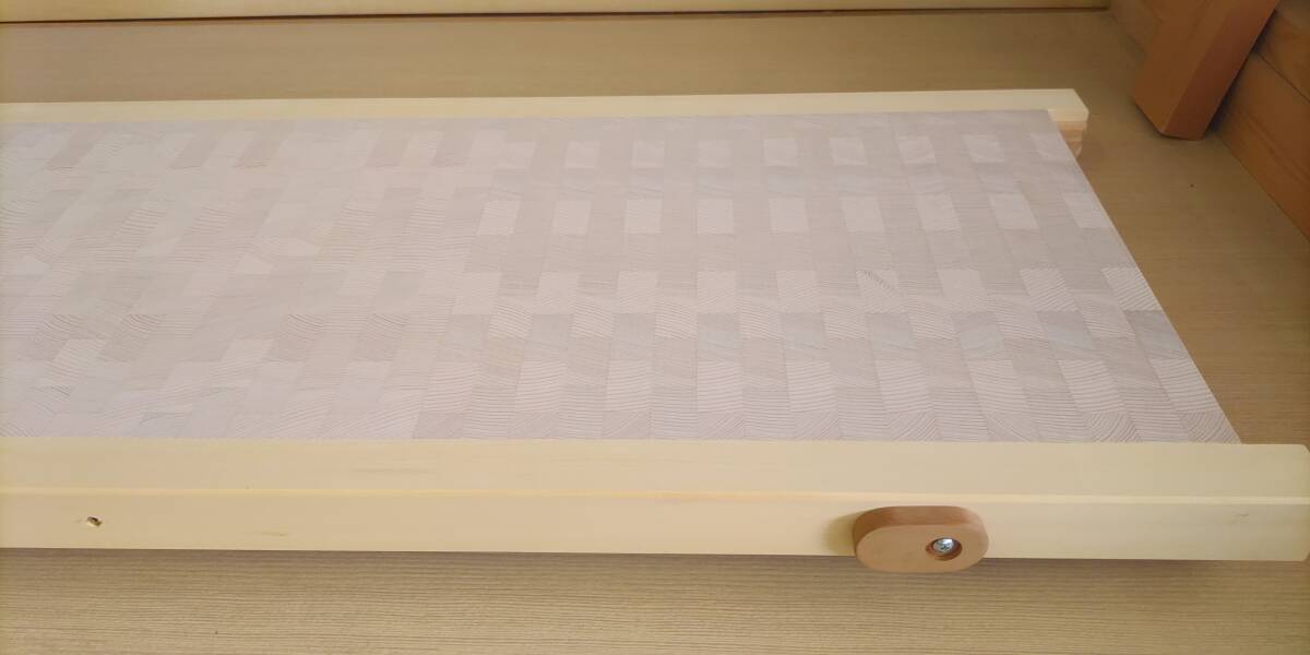 ☆5年がかりで作り上げました ☆こだわりの独自製法 ☆硬さもあり長持ち ☆そばを切る時に切り板がずれるのを防ぐためのストッパー付き フチ材 ヒバ 本体 1005x310x40(mm) 外寸 1060x375x40(mm) |