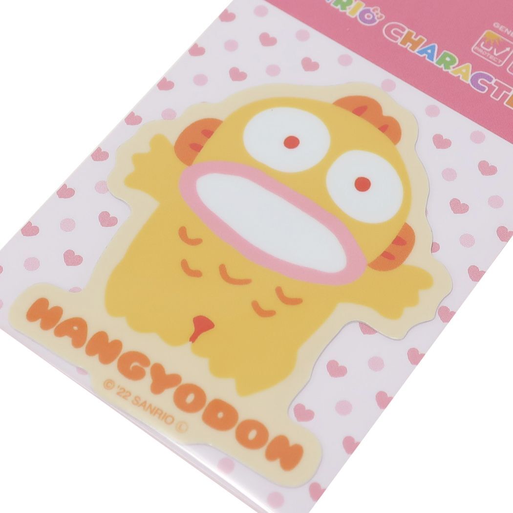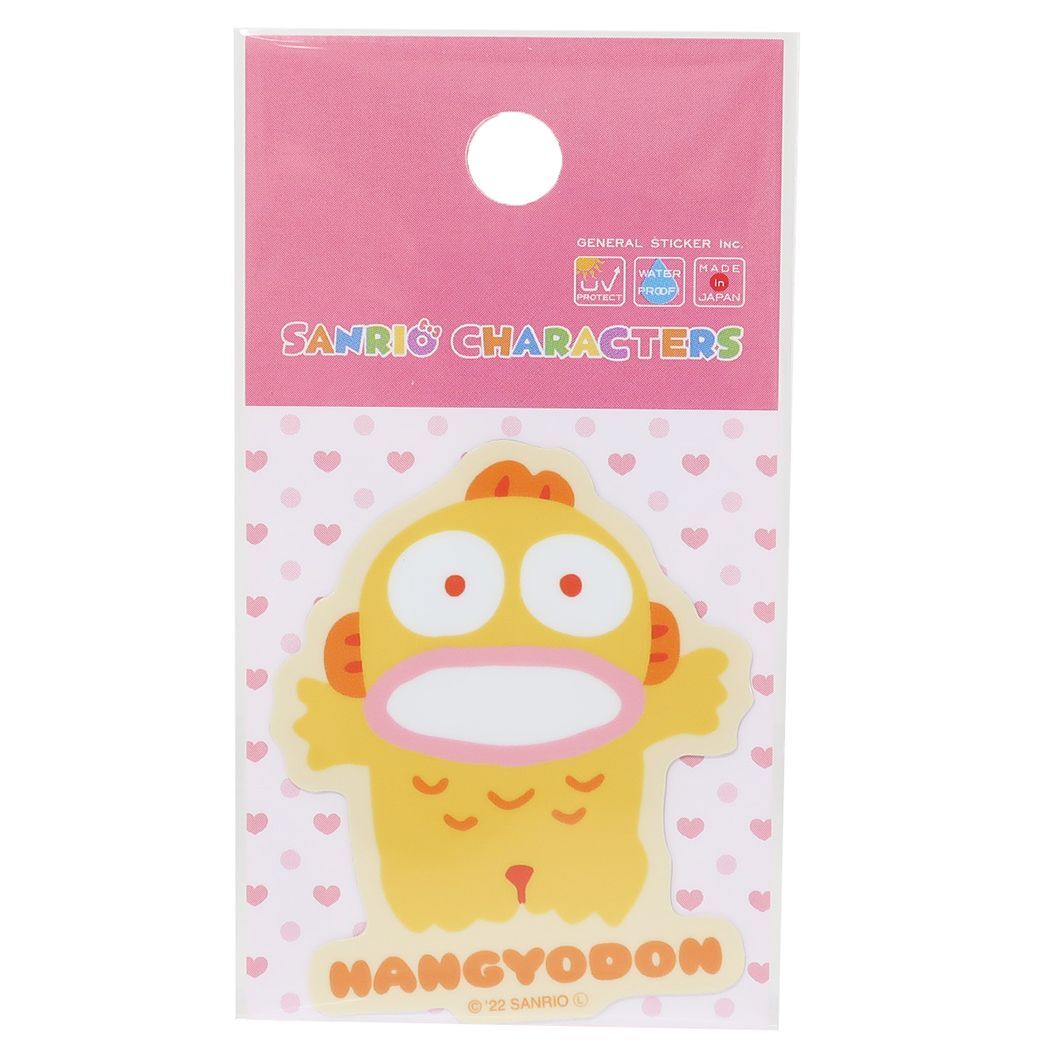 自転車やパソコンいろんなところに貼って楽しい防水ステッカー サンリオの大人気キャラ[HANGYODON/ハンギョドン]のかわいいステッカーが登場耐光耐水仕様のビニール素材なので屋外使用もOKバイクやメットはもちろん、スマホ、タブレット、パソコン、車、楽器、ボード、冷蔵庫、自転車、スーツケース、マグカップ、文房具や手帳など色々なところでお楽しみ下さい。かわいいステッカーいろいろあるのでお気に入りを揃えてくださいサイズ:約50x55mm以内[Made in Japan]