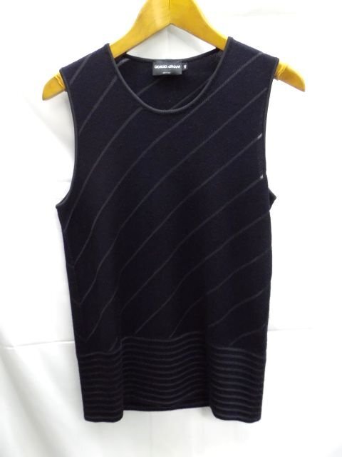 GIORGIO ARMANI★ジョルジオアルマーニ/ノースリーブニット/ニットベスト/ウール/シルク/カシミヤ/ブラック/黒/イタリア製/40サイズ【中古】K250618TK-08