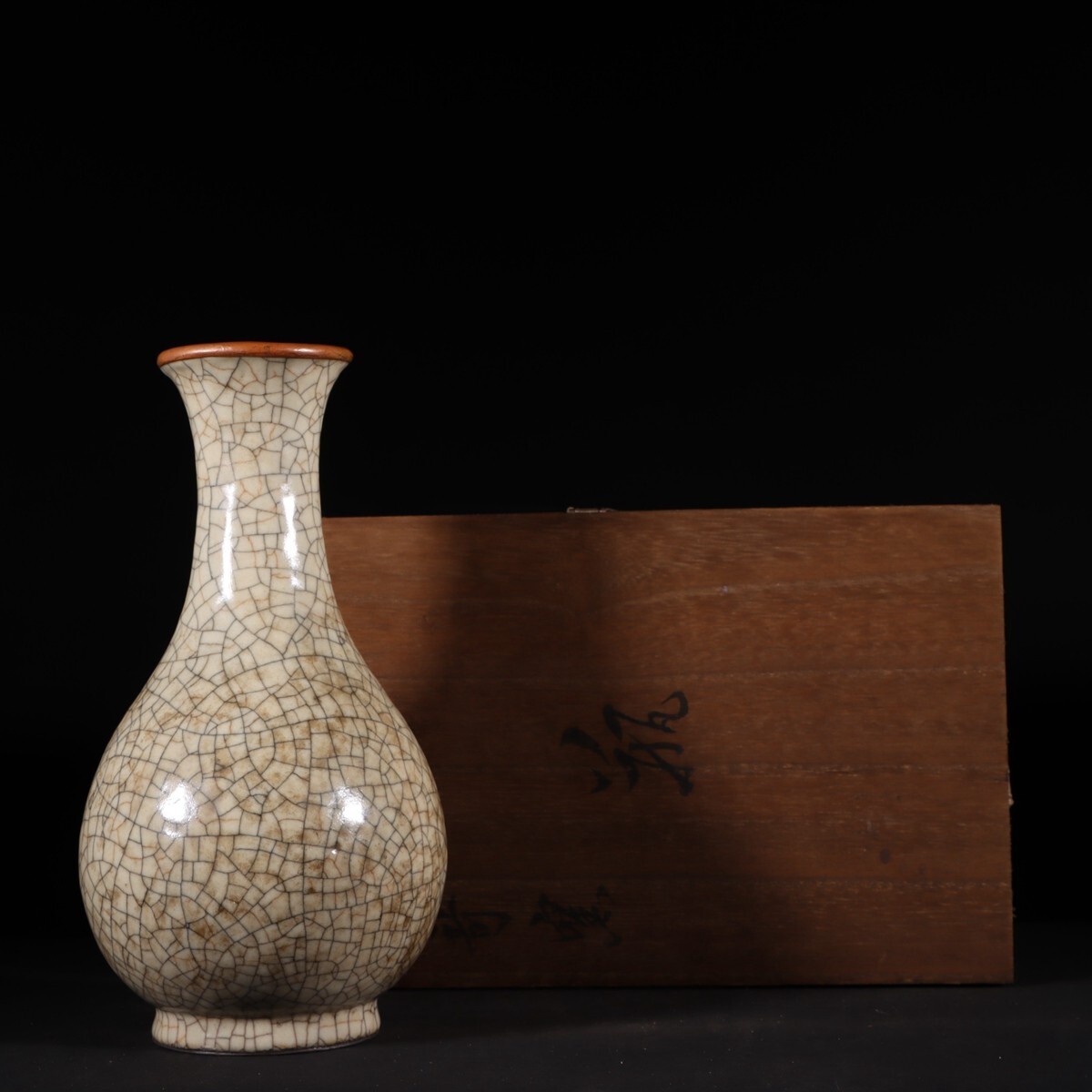 「宋 哥窯 陶磁器 紫銅口 瓶 永和宮款」染付 置物 擺件 古賞物 中国古美術 旧蔵出