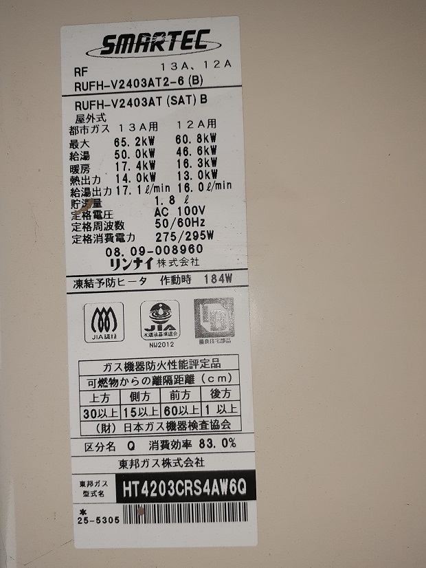 【都市ガス・24型】温水暖房付ふろ給湯器 HT4203CRS4AW6Q(中古)