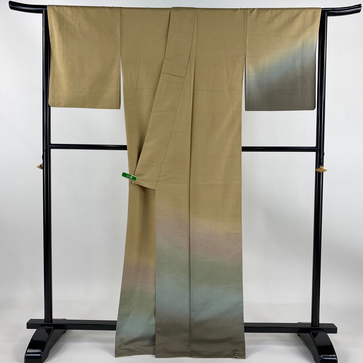 | 付下げ 逸品 落款 牛首紬地 ぼかし 薄茶色 袷 身丈166 裄丈66.5 M 正絹 【中古】 |
