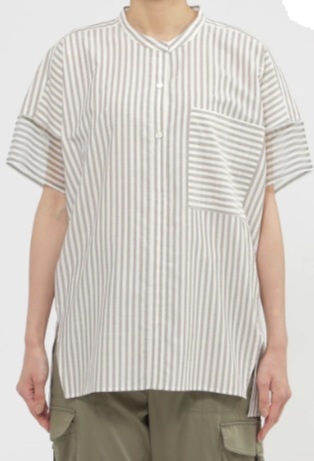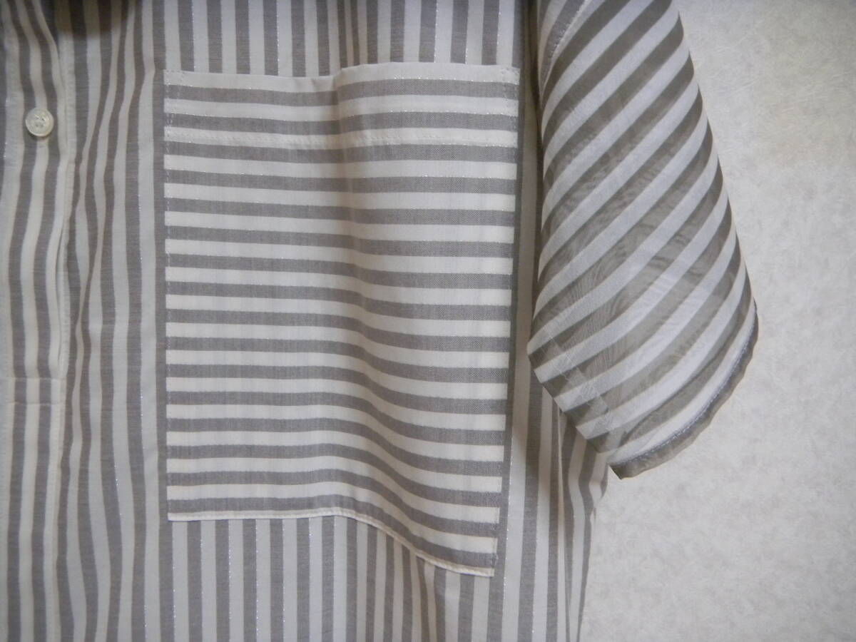 新品タグ付★44★2.6万【EVEXbyKRIZIA】ストライプ/フレンチスリー/ブブラウス★エヴェックス/バイ/クリッツイア★シアーコンビ★ダークグレー