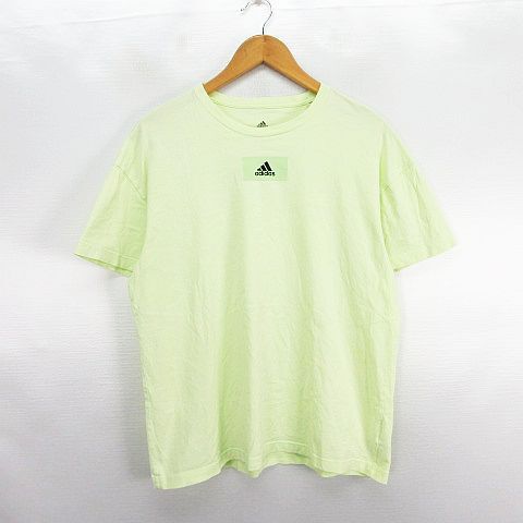アディダス adidas Tシャツ カットソー 半袖 ドロップショルダー クルーネック ロゴ コットン L レモン ※EKM メンズ