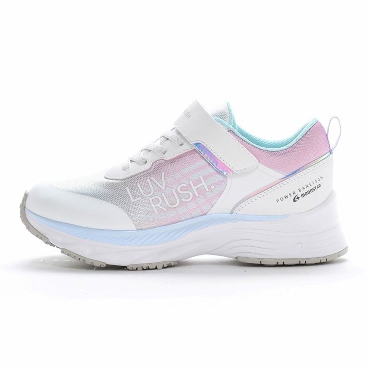 | 「もっと可愛く!もっと速く!女の子のスポーツシーンを足元から応援!」をコンセプトに誕生したムーンスターのガールズ向けブランド「ラブラッシュ バイ スーパースター」の幅広3Eジュニアシューズです。 「速く走る」を体現するために従来のパワーバネの約150%の復元力を持つ「パワーバネ150」を靴底に搭載しています。 重さは21.0cmで片足約195gです。 【パワーバネ】ムーンスター独自開発の特殊なゴムを靴底に搭載し、地面を踏みこむときにパワーを蓄積し、蹴り出すと同時に一気にパワーを推進力に。 【Ag+抗菌防臭】銀イオンの抗菌作用でにおいのもととなる菌の増殖を抑制し、防臭効果を発揮します。 【洗えるインソール】インソールは取り出して洗えるのでいつも清潔に保てます。 【耐摩耗ラバー】靴底にはすり減りが少なく、高い耐久性を発揮するラバーを採用しています。 【軽量設計】軽くなるよう工夫を施した設計です。大人っぽいボリュームのあるソールと、アッパーのグラデーションメッシュに波状のラインがスポーティな雰囲気。部品を最小限に止めて軽さを追求しました。お出かけはもちろん、運動会や体育の時間等の走るシーンや様々なアクティビティにおすすめです。 | |
