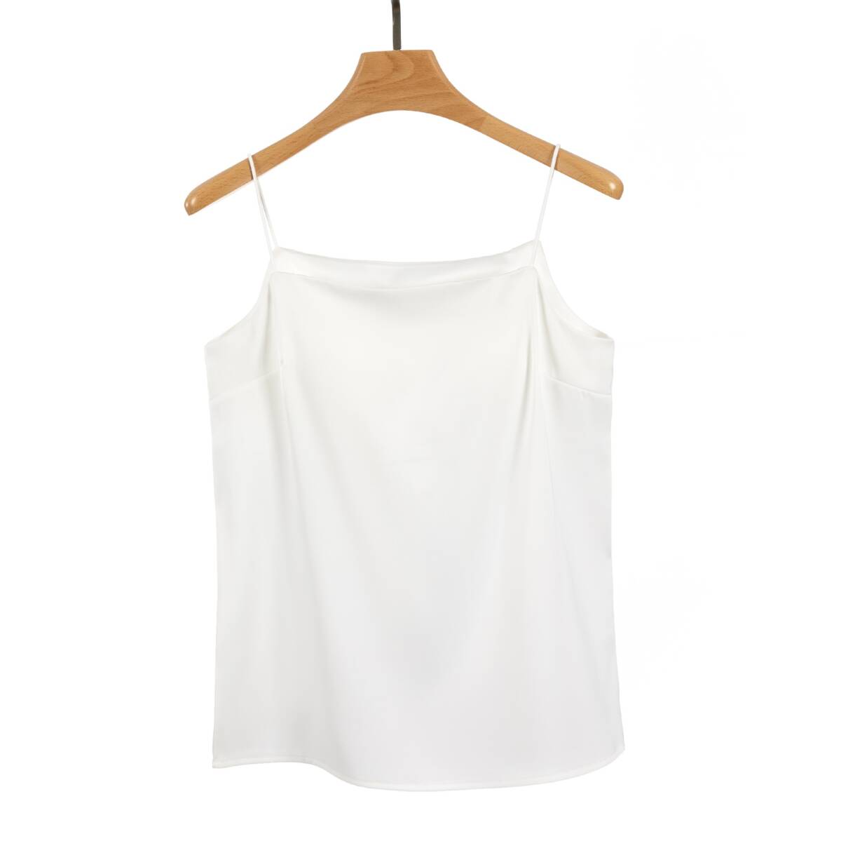 カップ付きタンクキャミ ブラトップ キャミソール サテン 下着 インナー サテンキャミソール レディース ブラ不要 ホワイトM