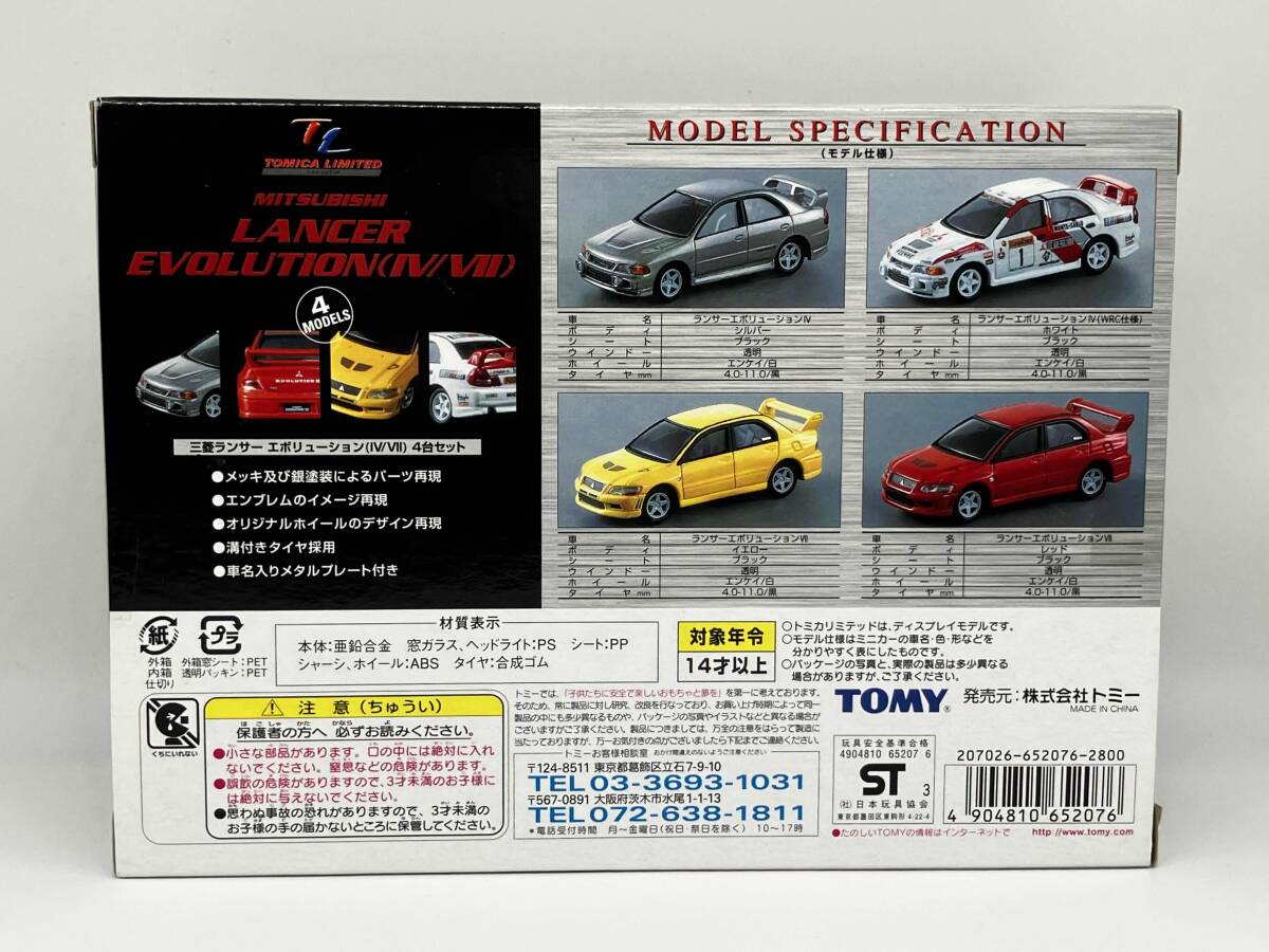 【商品名】トミカ MITSUBISHI LANCER EVOLUTION(Ⅳ/Ⅶ) 4MODELS トミカリミテッド トミー 【状態】未開封品・目立った傷無し |