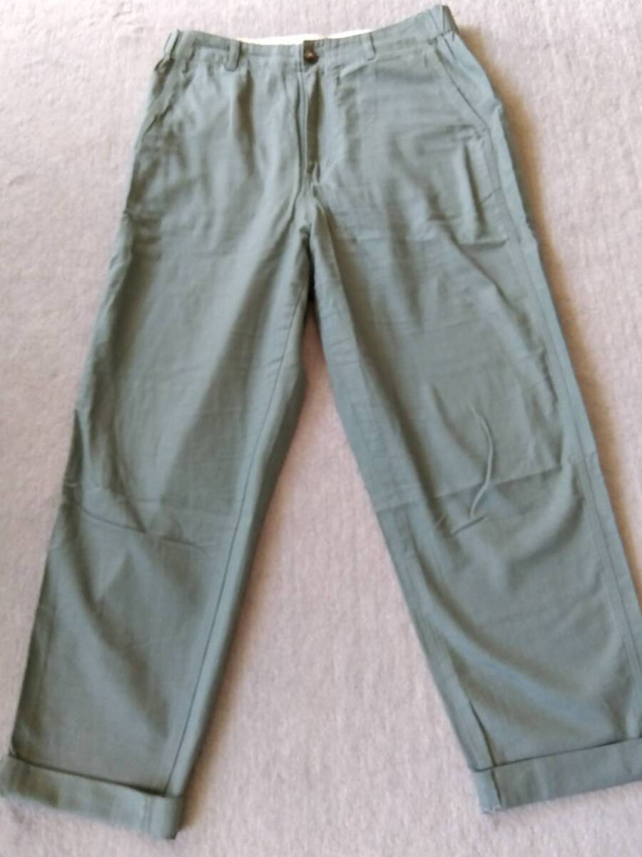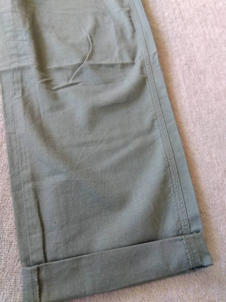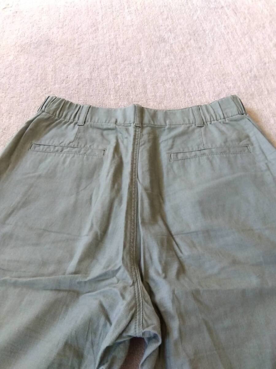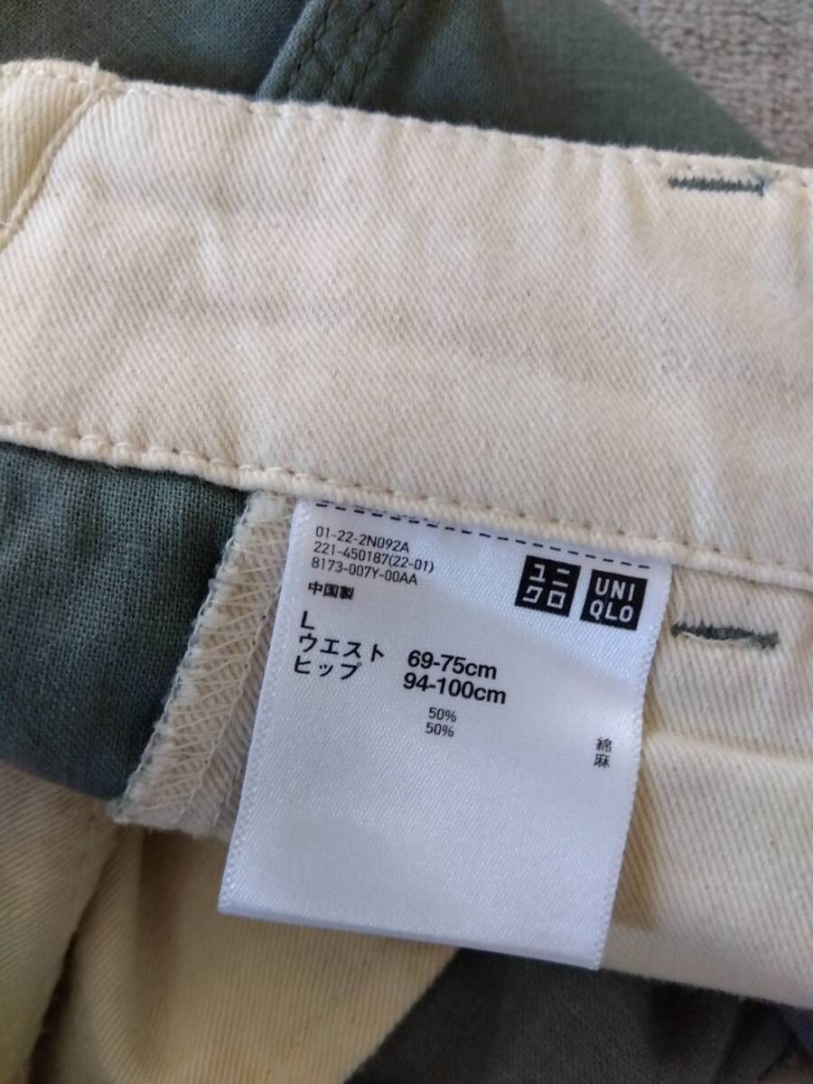 ユニクロ 麻混 パンツ サイズL カーキ ライン可愛い 美品