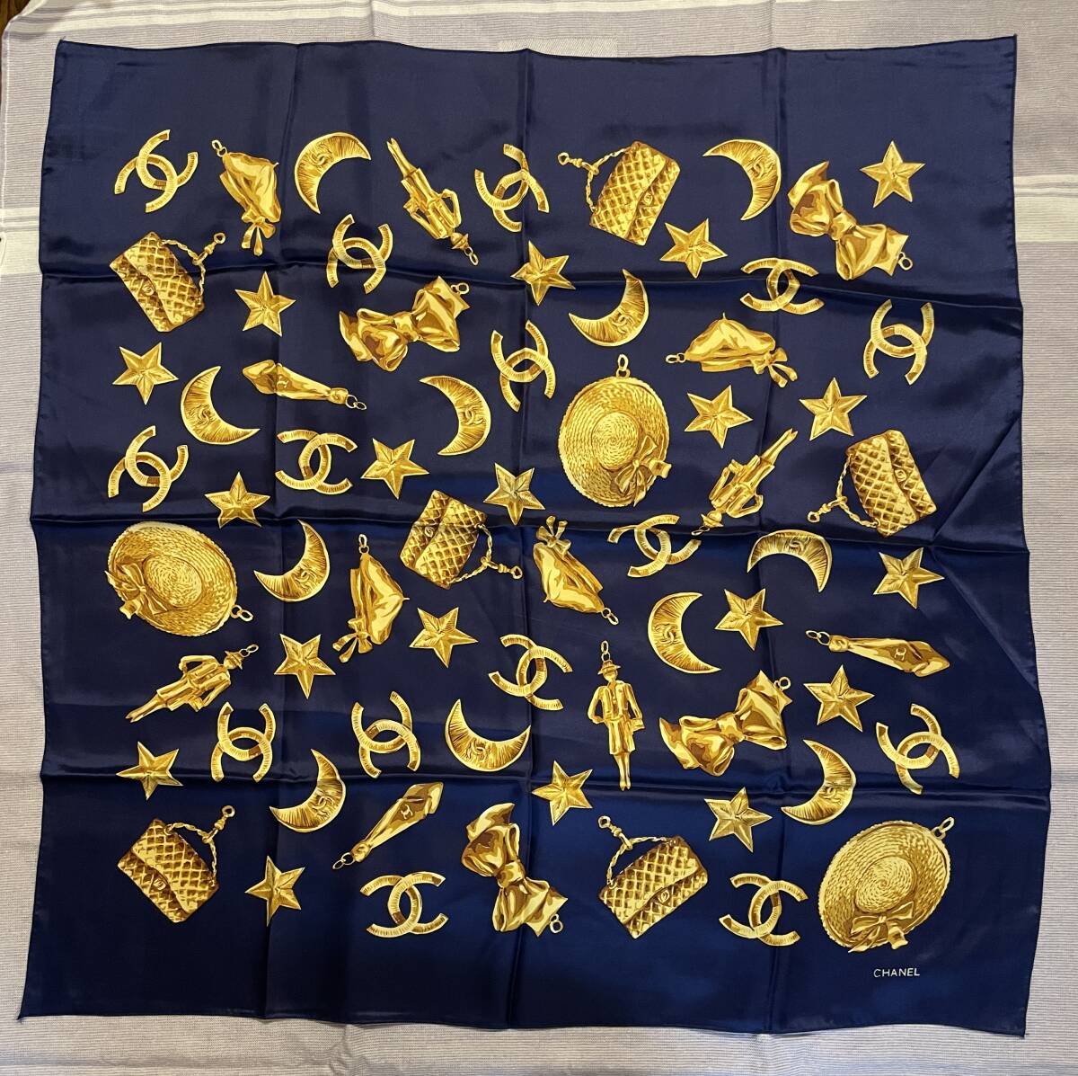 ◎CHANEL シャネル 星 月 スカーフ☆ビンテージ 濃紺