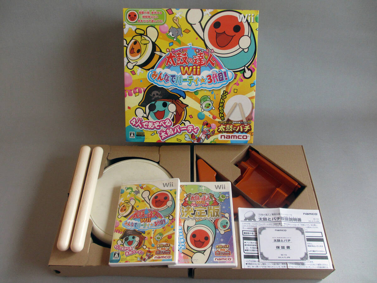 ☆★ 任天堂 太鼓の達人 Wii みんなでパーティ3代目 太鼓とバチ同梱版 タタコン Nintendo 決定版 ソフト2本 Wii U 送料無料 動作確認 ☆★