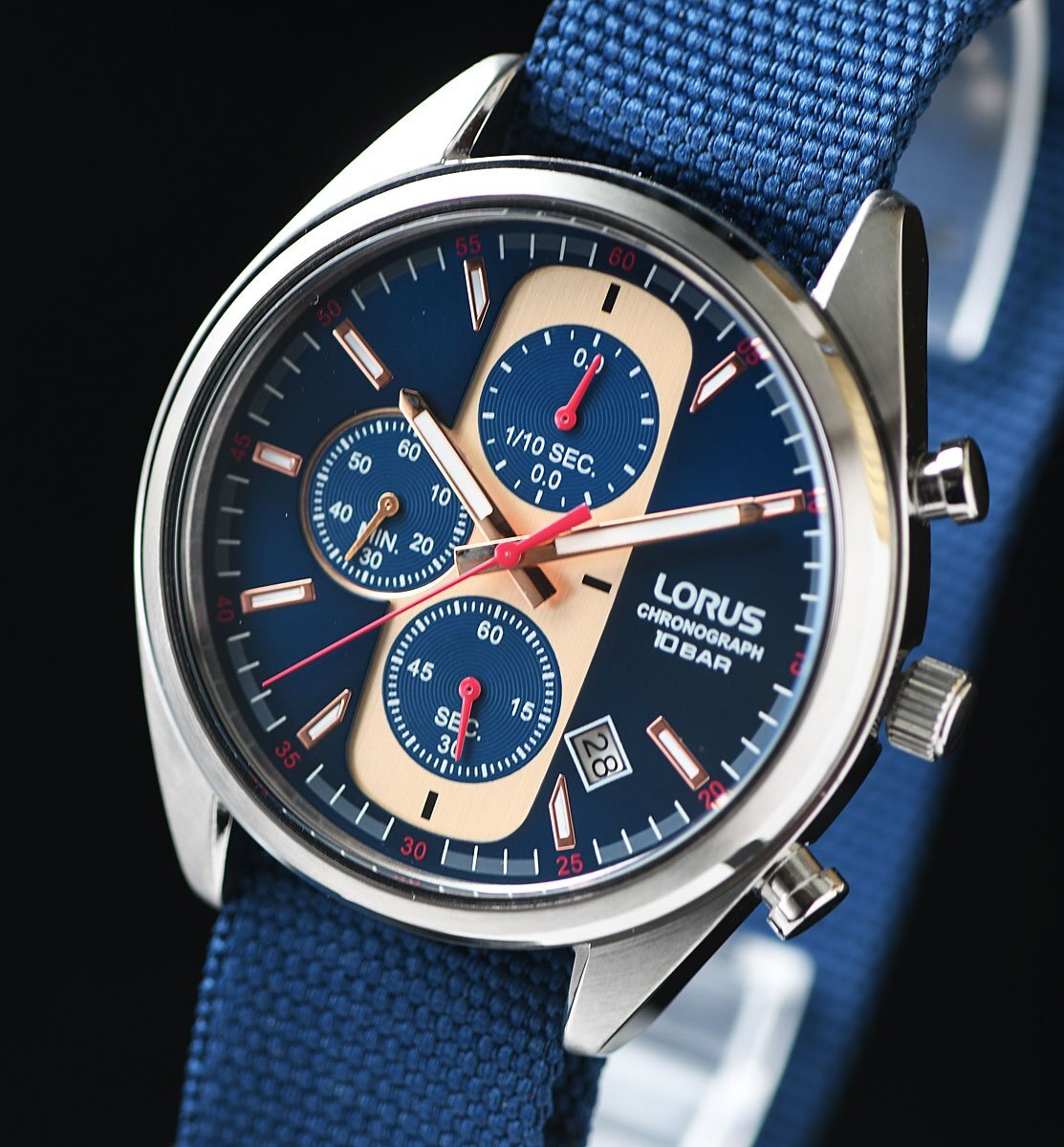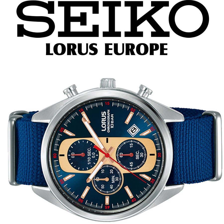 セイコーLORUS 新品 ミリタリー軍事クロノグラフ 100m防水 ブルー NATO軍ベルト 逆輸入 メンズ 激レア日本未発売 SEIKO