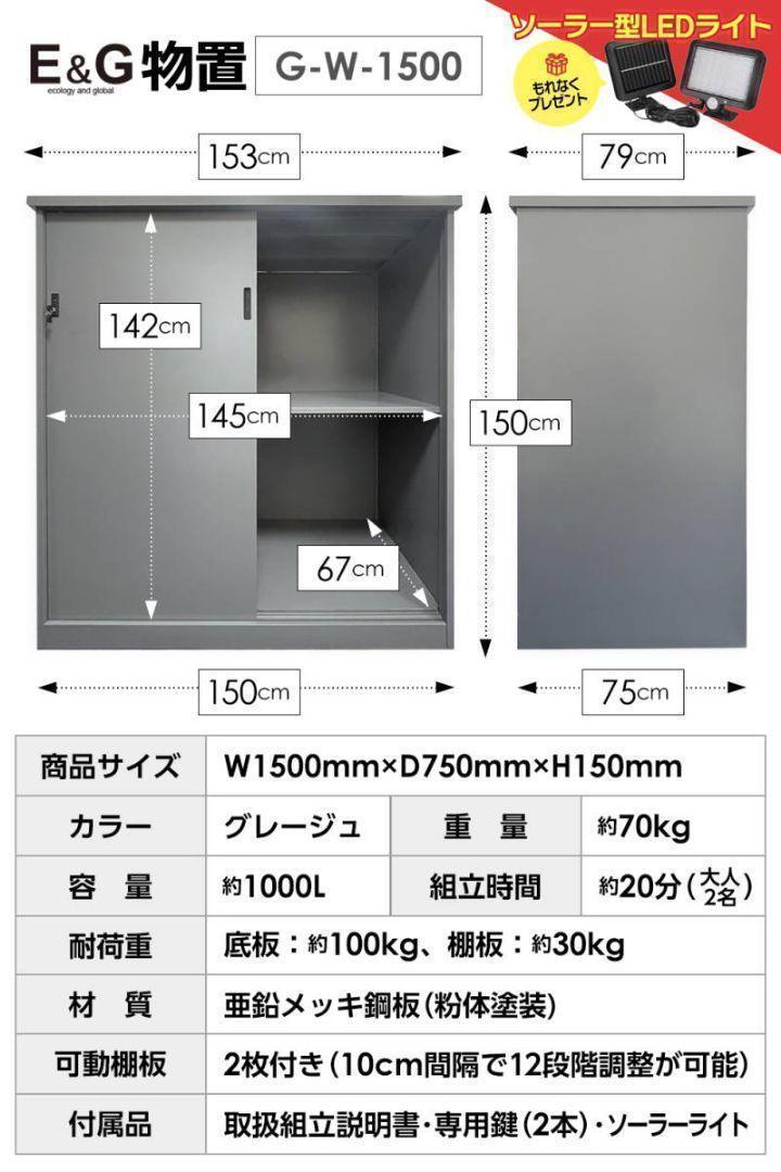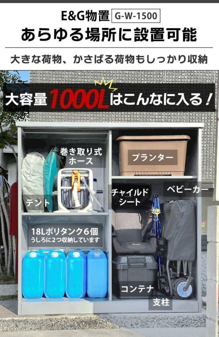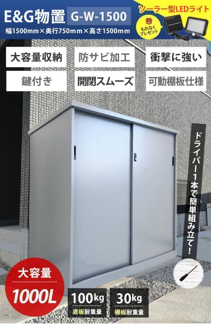 【カンタン組立】大容量1000L 大型物置 (W1530×H1500×D750) おまけLEDセンサーライト付き 簡易倉庫 屋外物置 大型物置 灯油タンク収納