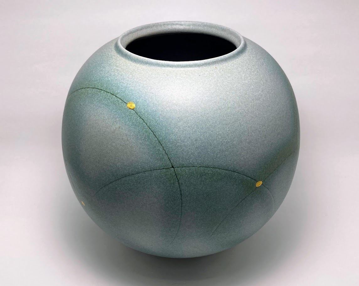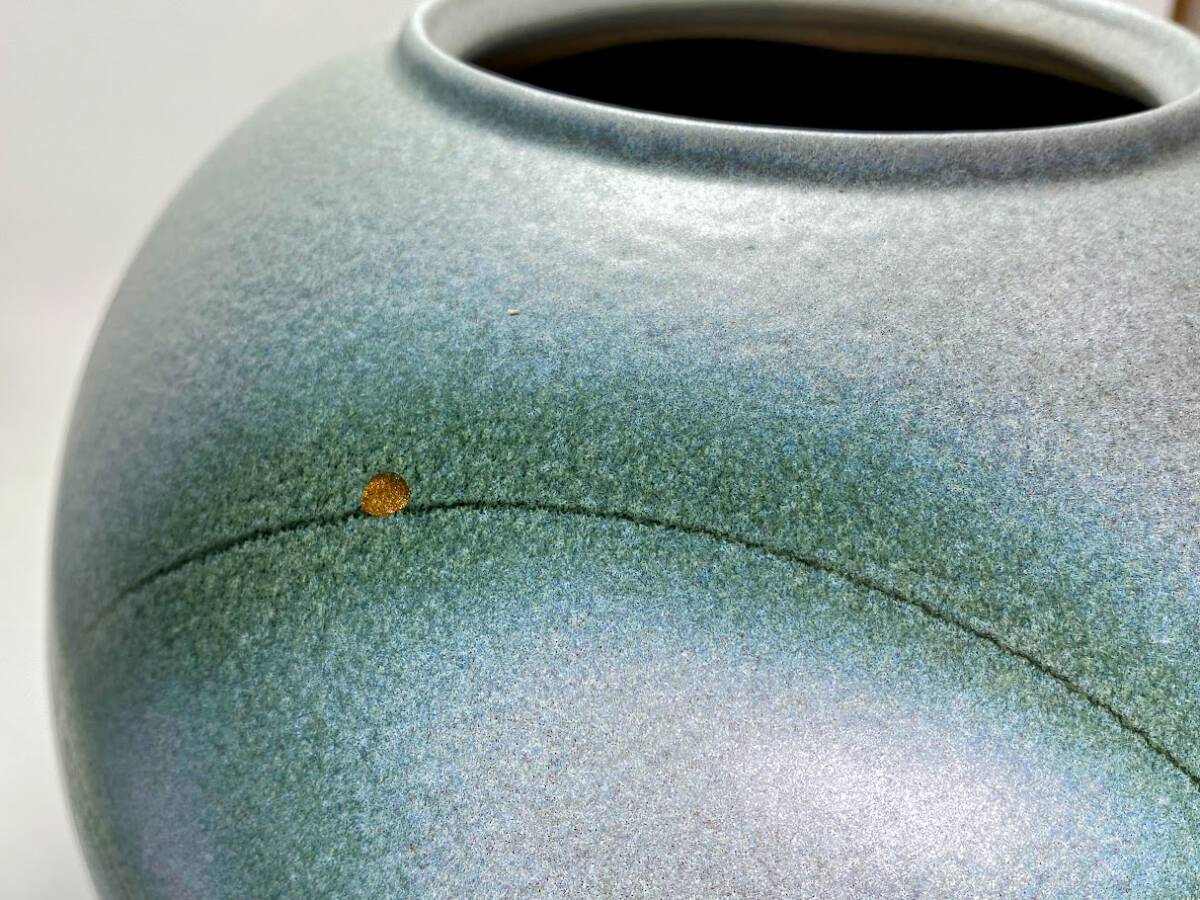 【美品】信楽焼 大原 薫作 花瓶 うぐいす 丸花瓶
