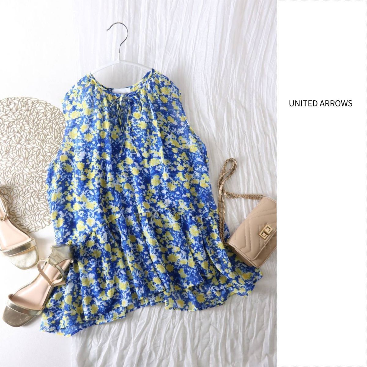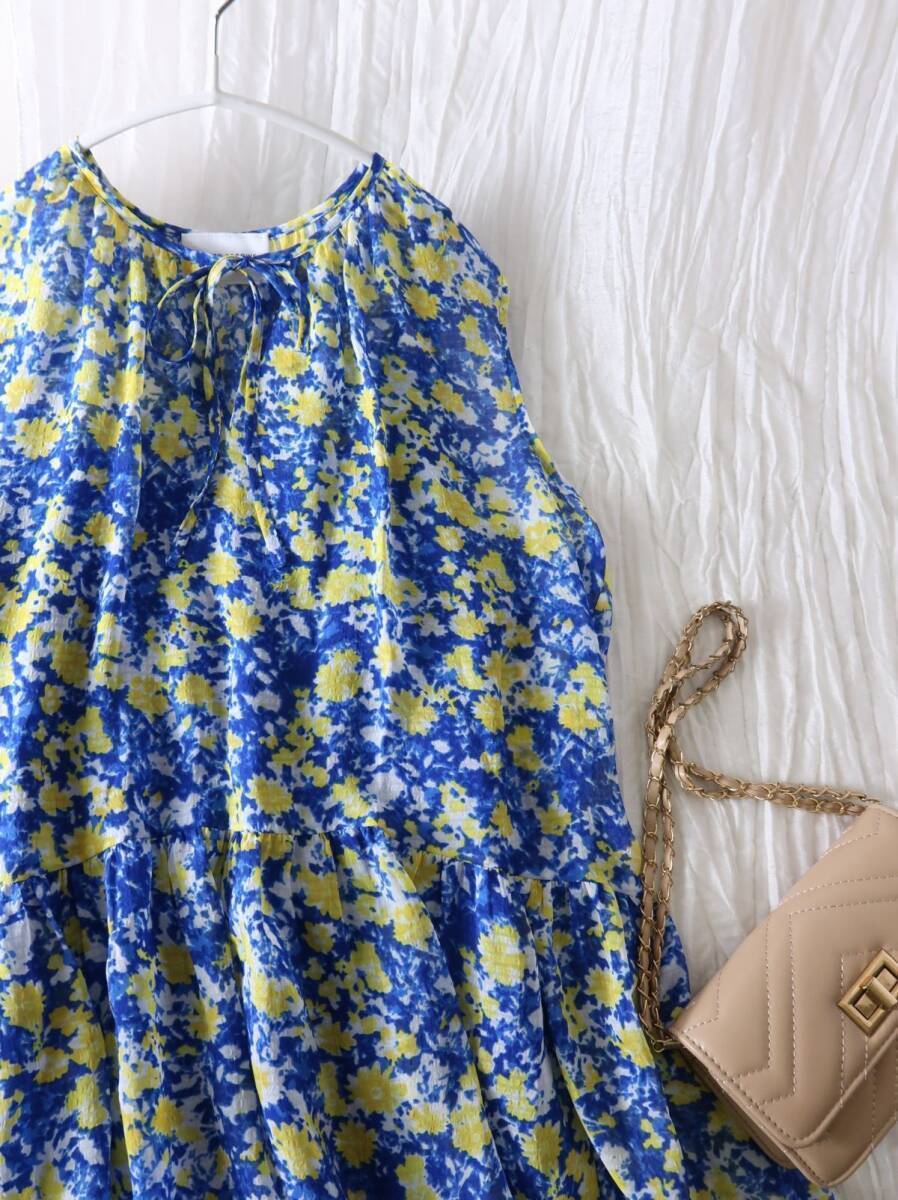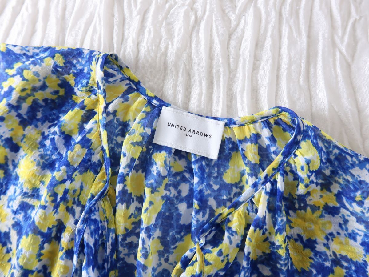 1.5万☆超美品☆ユナイテッドアローズ UNITED ARROWS☆洗える フラワー ティアード ノースリーブブラウス☆M-B 4349