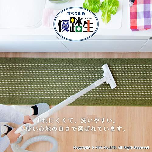 毛羽が出る、ほつれる、乾きにくいといった欠点を改良した洗濯機で丸洗いできる日本製キッチンマット「優踏生(ゆうとうせい)洗いやすい」。 汚れが落ちやすく洗濯後の乾きも早い使いやすいキッチンマットです。 優踏生シリーズで好評の、裏ゴムは当社従来品比5倍もの耐久性。 裏面はすべり止め加工を施しているのでよく動きまわるキッチンでも安心してお使いいただけます。 毎日使うキッチンでの汚れ、ケチャップやソースなどの汚れが付いてしまってもお洗濯するとシミも残りにくく清潔に長くご使用頂ける魅力も。 またクッション性も十分にありますが薄手なのでシステムキッチンの引き出しに引っかかりにくく毛羽立ちが少ないので日頃のお手入れも簡単です。キッチンだけでなはく玄関や廊下でも足元への負担や冷えを和らげます。
