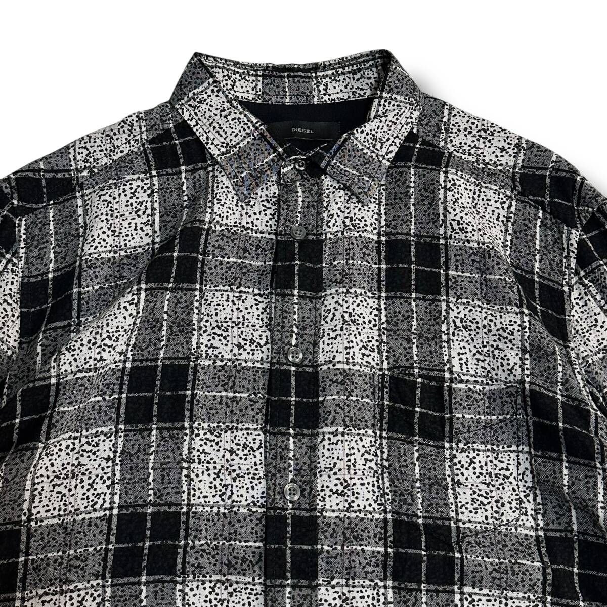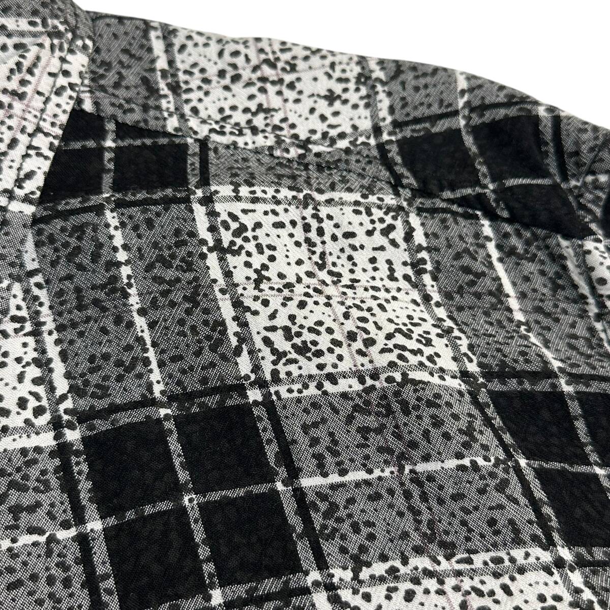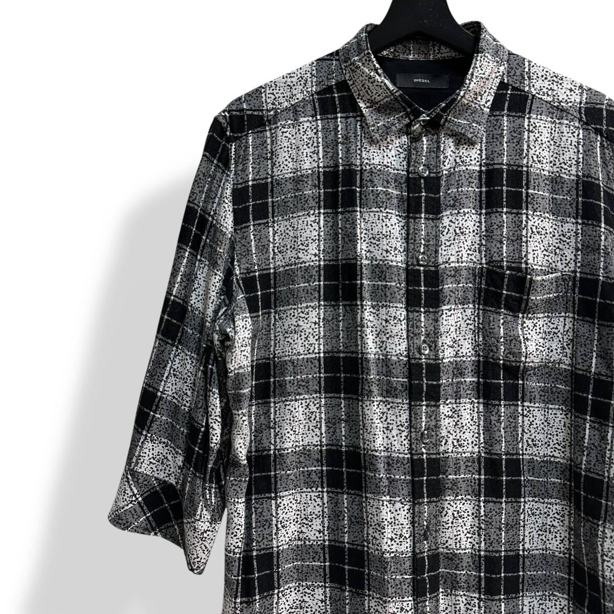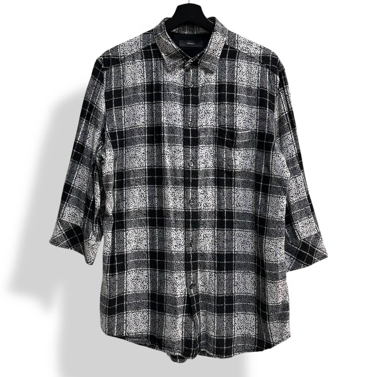 お洒落【DIESEL】チェック柄 レーヨン100% 7分袖シャツ モノトーン ディーゼル マダラ模様 ドットペイント Lサイズ