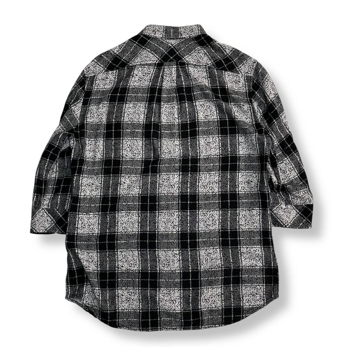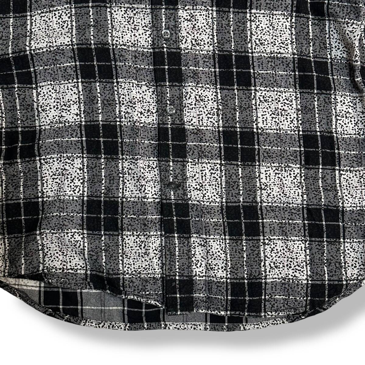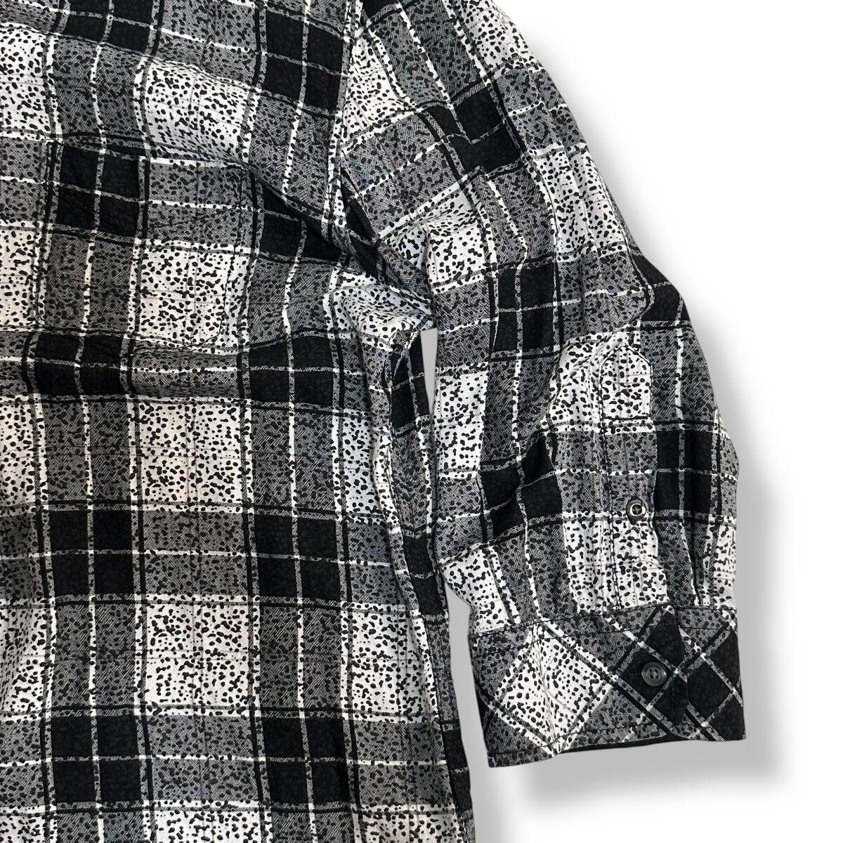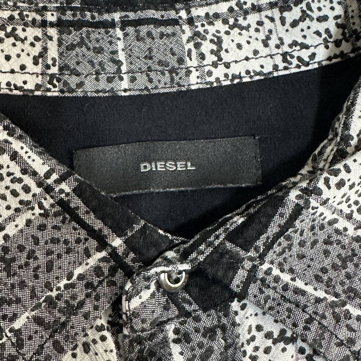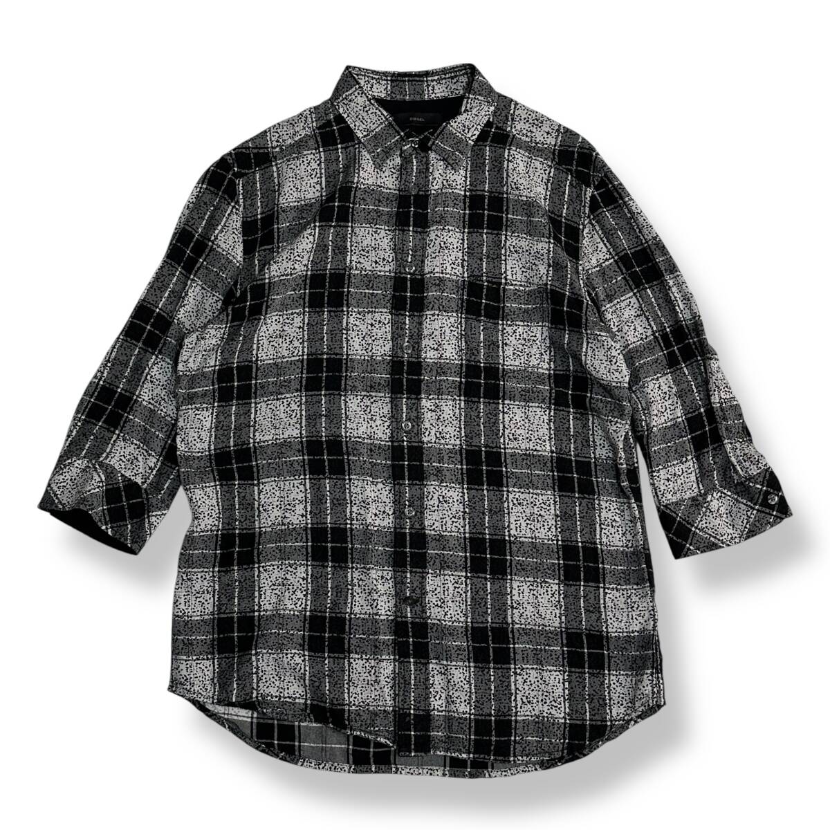 お洒落【DIESEL】チェック柄 レーヨン100% 7分袖シャツ モノトーン ディーゼル マダラ模様 ドットペイント Lサイズ