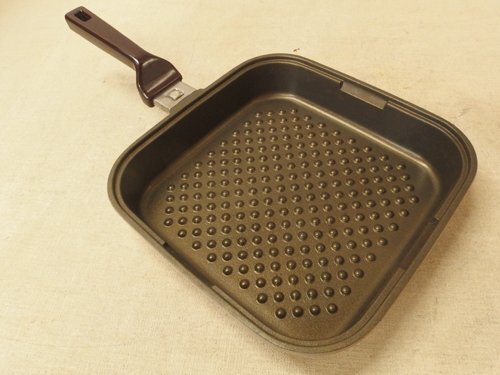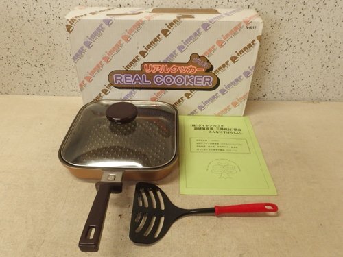☆★☆---☆★☆---☆★☆---☆★☆---☆★☆---☆★☆---☆★☆---☆★☆---☆★☆---☆★☆ナカノ リアルクッカー グリルパン【商品概要】ナカノ製 リアルクッカー グリル 角形タイプのフライパン(グリルパン)です。超硬質被膜&三層焼付仕様、内面はフッ素樹脂加工が施されており、焦げ付きにくく使いやすい設計。ガラス蓋付きで、調理中の中の様子も確認しやすく、魚焼き・肉料理・グリル野菜など幅広い調理に適しています。実用目的はもちろん、レトロ調理器具としてのコレクションにも。ターナー・レシピ冊子付き【サイズ】・外部:46×25.4×11.2cm・内部:25.4×25.4×10.3cm・底の厚さ:約5mm(箱表記による)【商品状態】・中古品・実用性未確認・外観に汚れやシミ、変色、スレあり・箱にも汚れやスレあり※現状渡しとなります。画像にて状態をご確認のうえご検討ください。以上のような状態ですが、よろしければどうぞ♪(^^)☆★☆---☆★☆---☆★☆---☆★☆---☆★☆---☆★☆---☆★☆---☆★☆---☆★☆---☆★☆