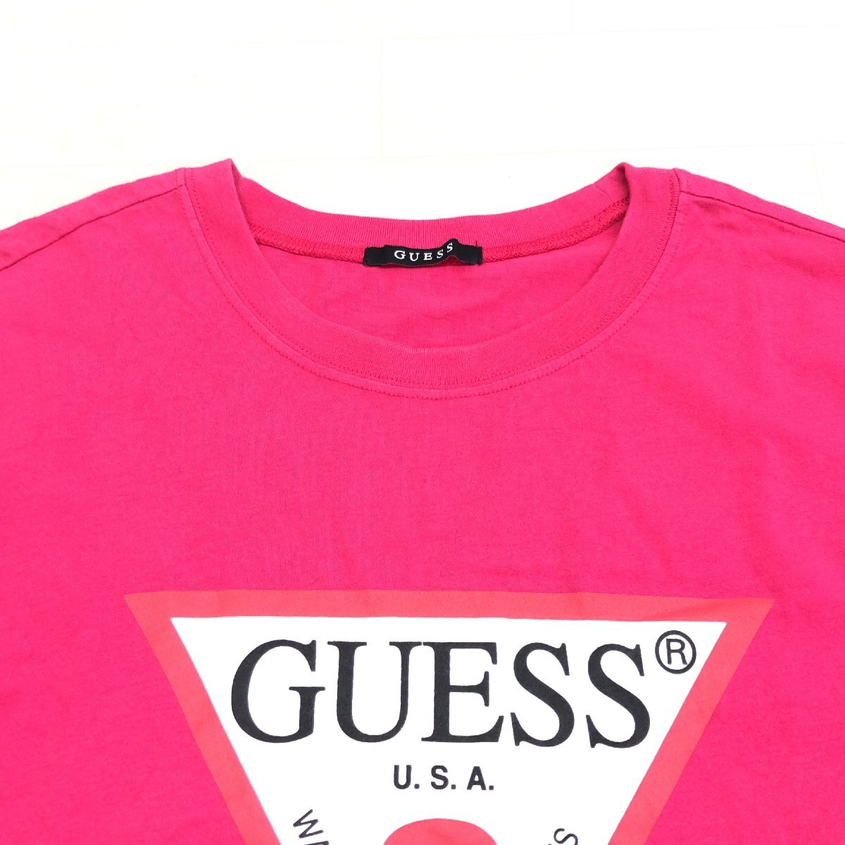 美品 GUESS ゲス ビッグシルエット トライアングルロゴ コットン Tシャツ F ローズピンク 半袖 オーバーサイズ レディース y2k archive
