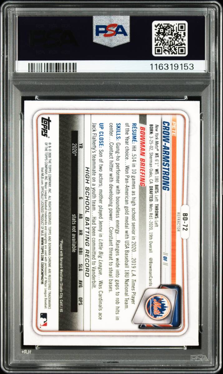 2020 Bowman Draft カードNo.BD72「PETE CROW ARMSTRONG」選手の
