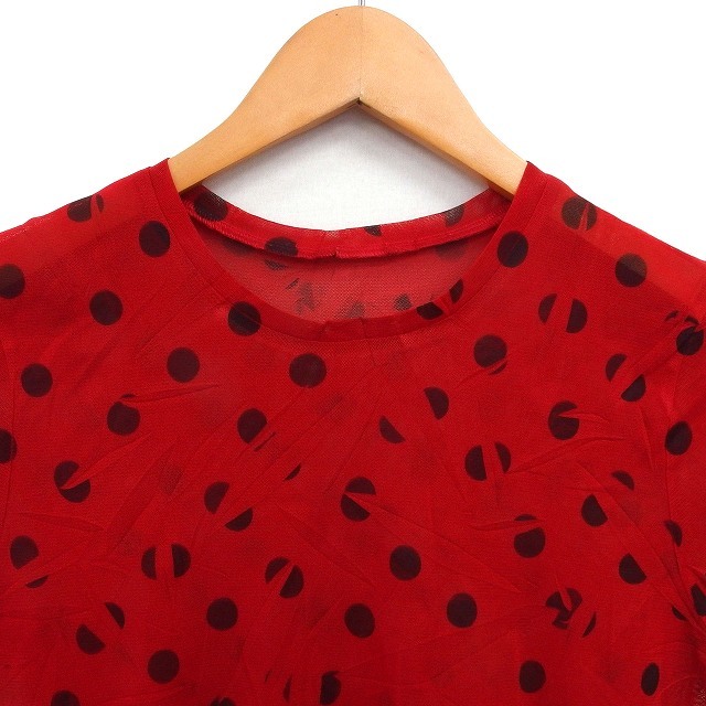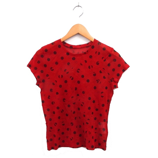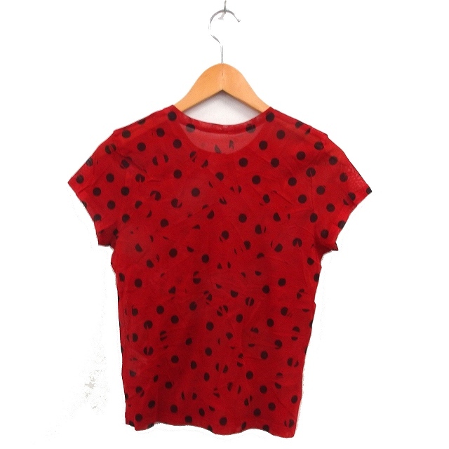 t.b ティービー センソユニコ クルーネック カットソー Tシャツ 透け感 水玉 ドット ストレッチ 半袖 38 赤 レッド /NT17 レディース