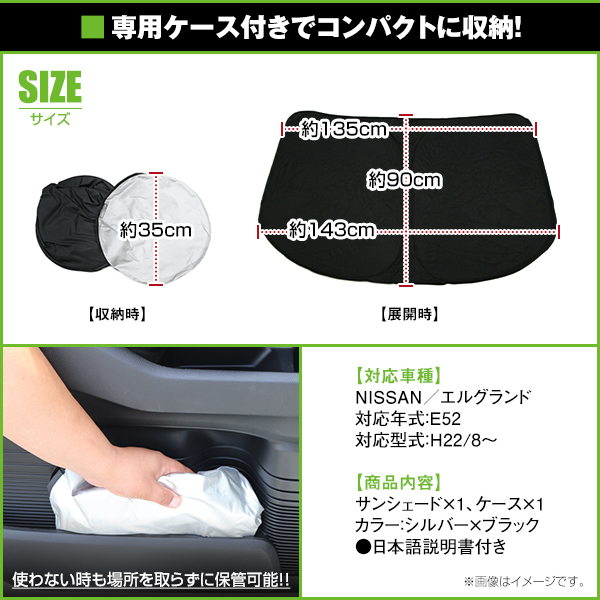 ワンタッチ 折り畳み式 フロント サンシェード 日産 エルグランド E52 シルバー×ブラック フロントガラス 日よけ 遮光