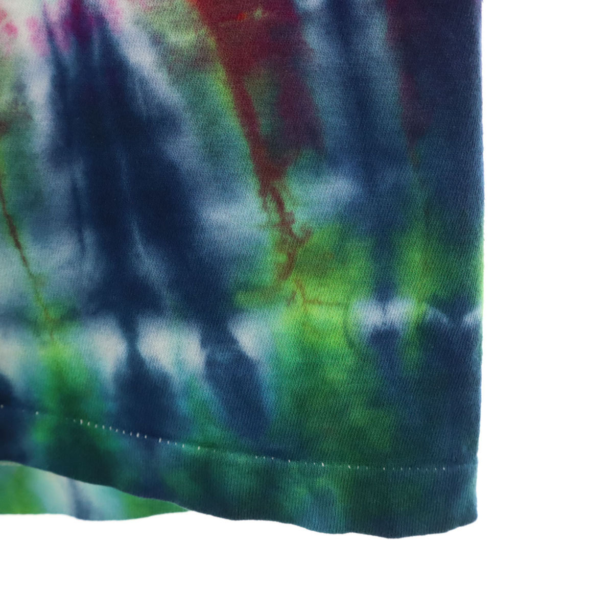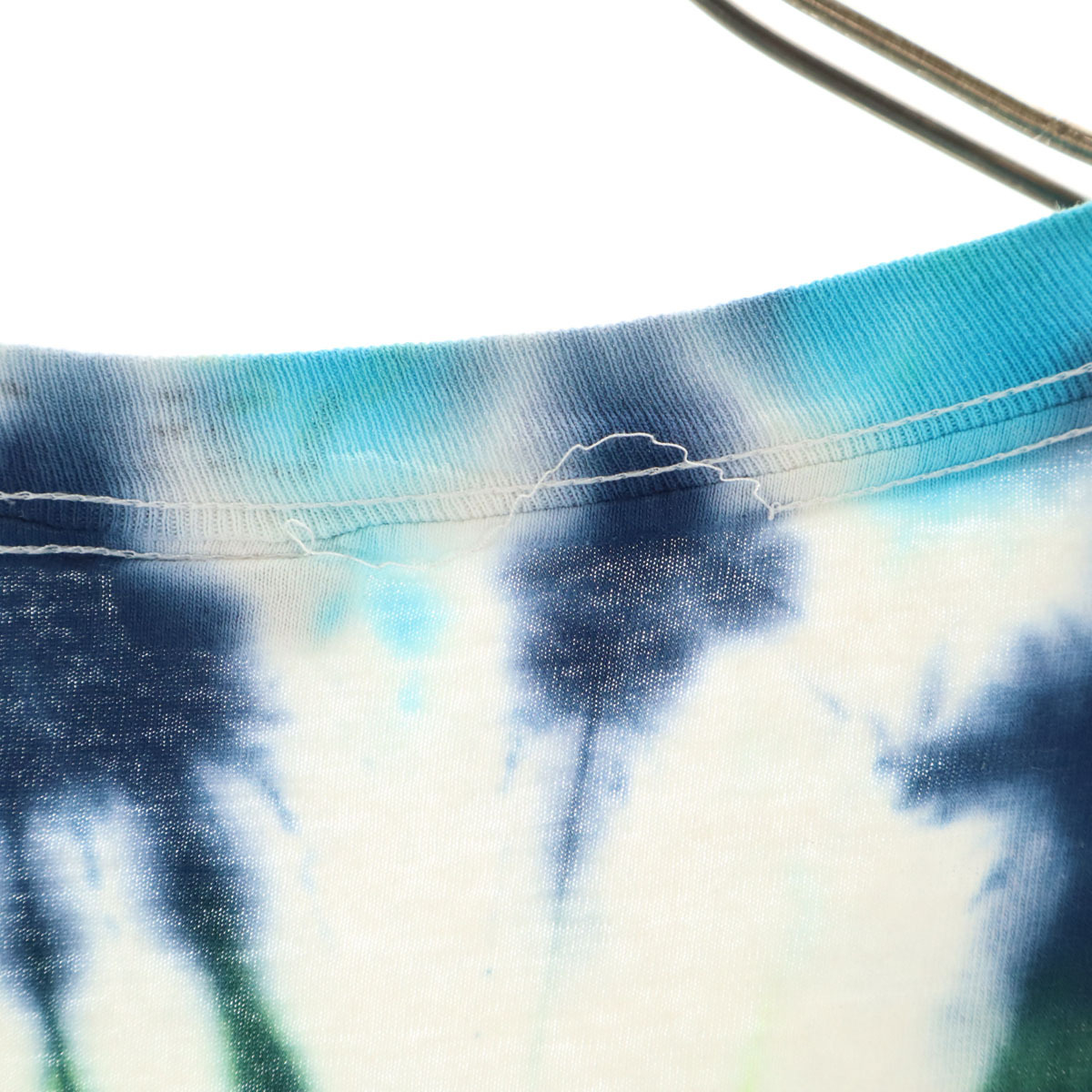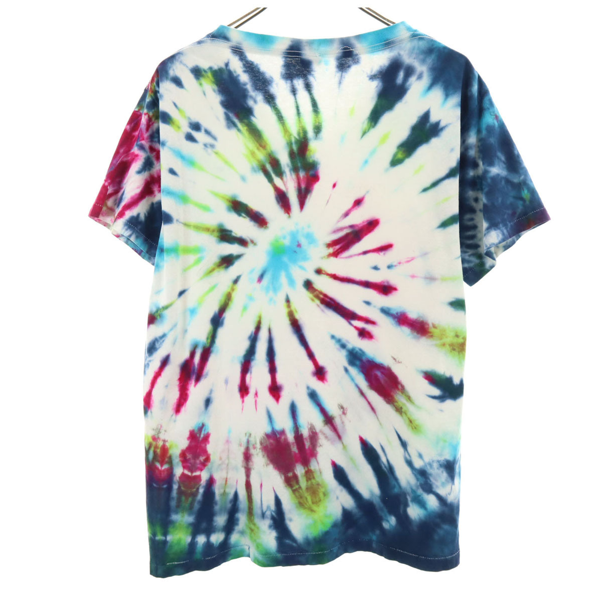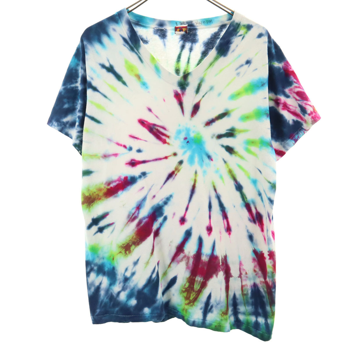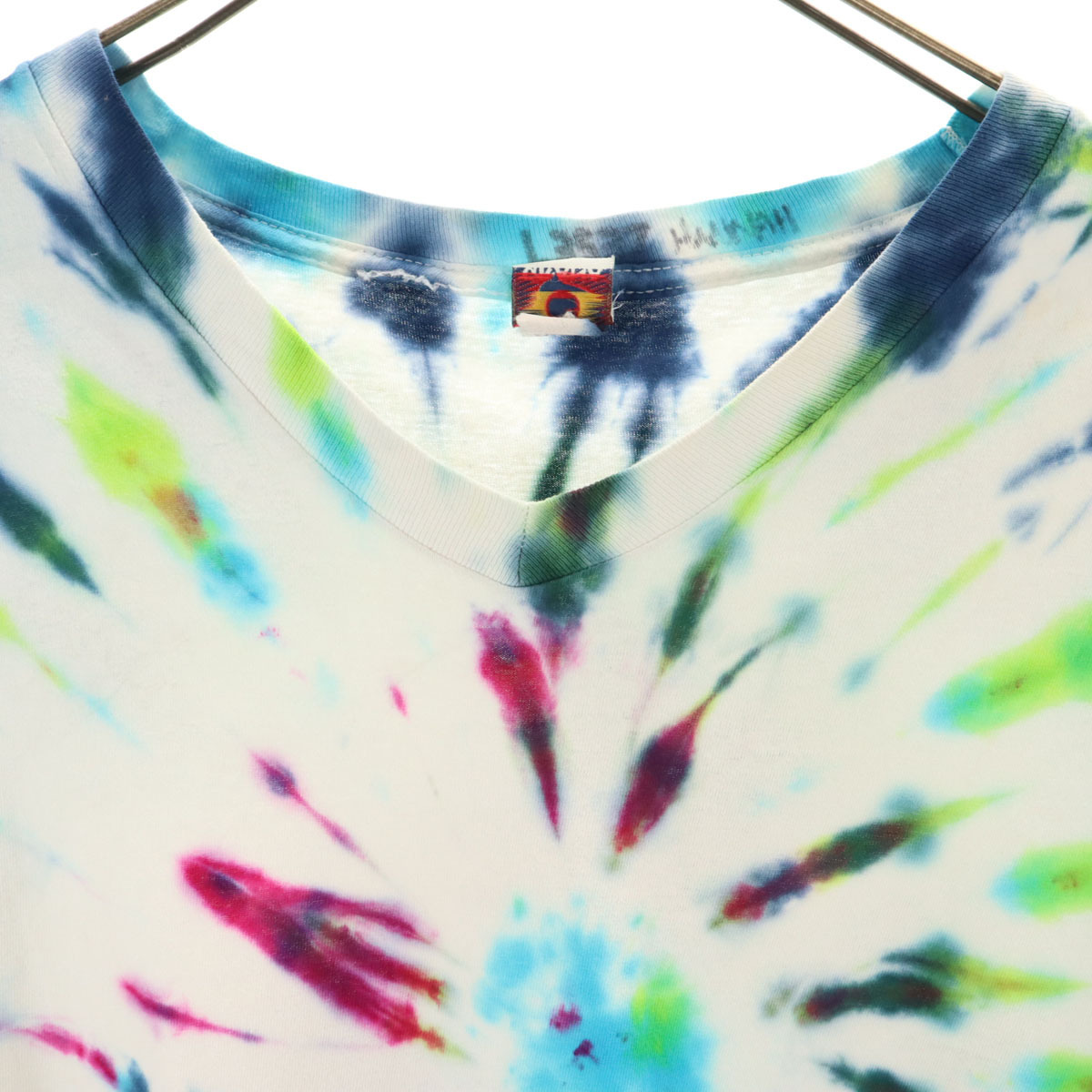 詳細 | 90年代のオールドのタイダイTになります。襟ぐりにマジックでネームがあります。後ろ襟ぐりにほつれ、両脇に汚れあり。内タグが消えておりサイズ、素材共に不明です。実寸も参考にお願いします。古着にご理解の上ご購入をお願い致します。 |