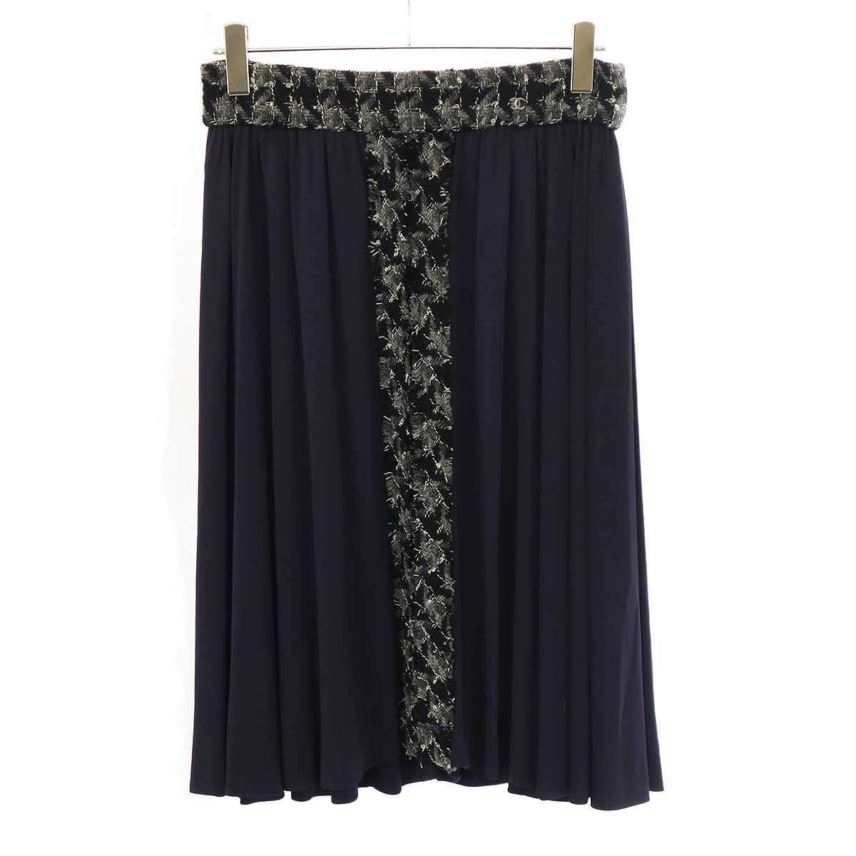 CHANEL シャネル ツイードコンビレーヨンスカート P54588V41169 ネイビー 44 ITRBMKHYICPW
