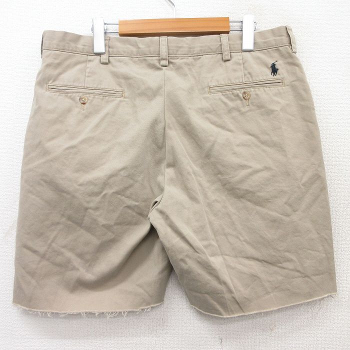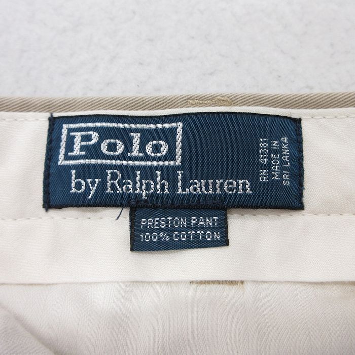 【商品名】 W36★古着 ラルフローレン ブランド ショート パンツ ショーツ メンズ 90年代 90s ワンポイントロゴ PRESTON コットン ベージュ
