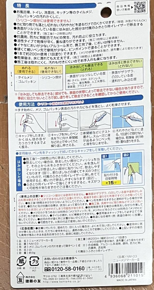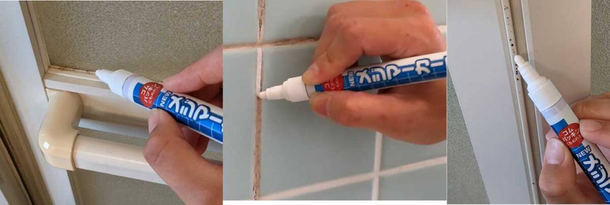 ・お風呂場、トイレ、洗面台、キッチン等のタイル目地、ゴムパッキンの汚れかくしに。
