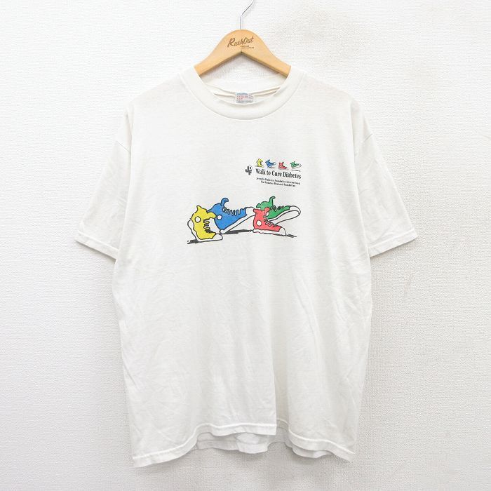 【商品名】 XL★古着 ヘインズ 半袖 ビンテージ Tシャツ メンズ 00年代 00s WALK 企業広告 クルーネック 白