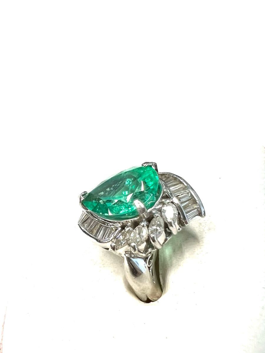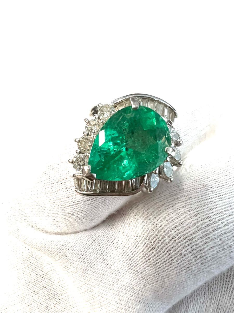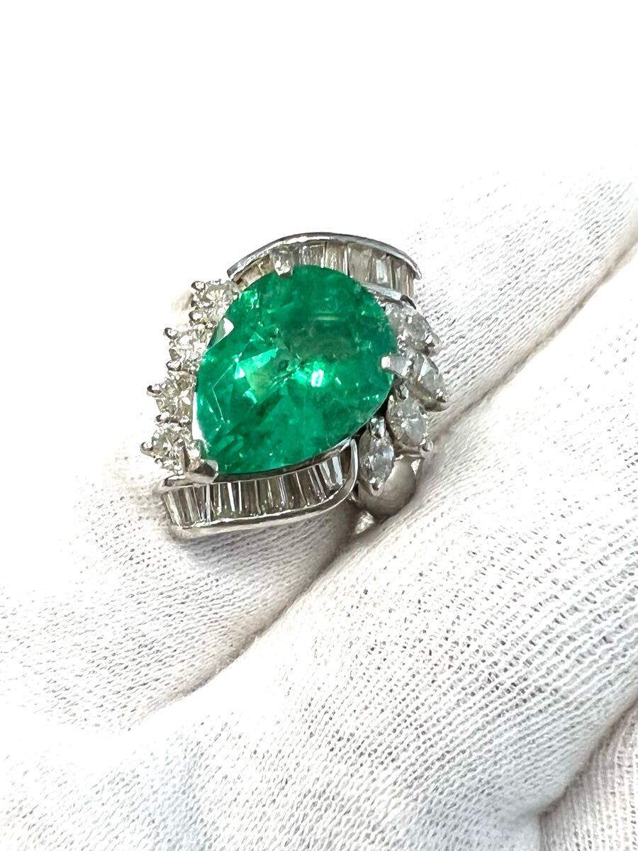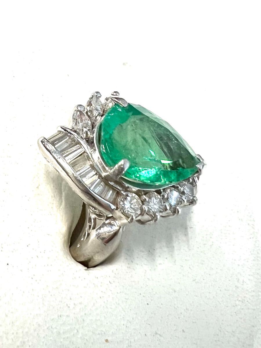 Pt900 天然特上 特大エメラルド ダイヤモンド リング 超豪華!5.23ct