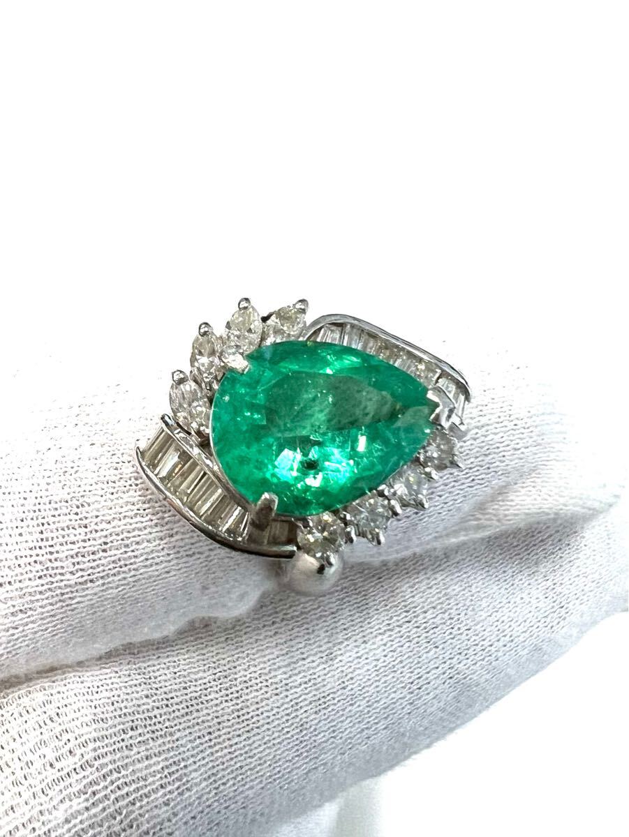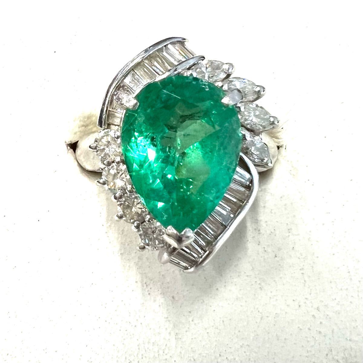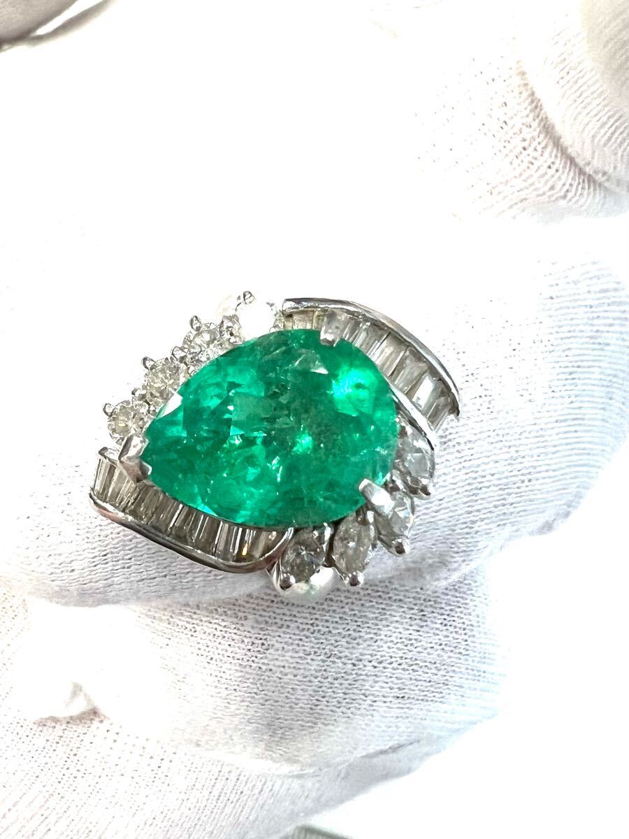 Pt900 天然特上 特大エメラルド ダイヤモンド リング 超豪華!5.23ct