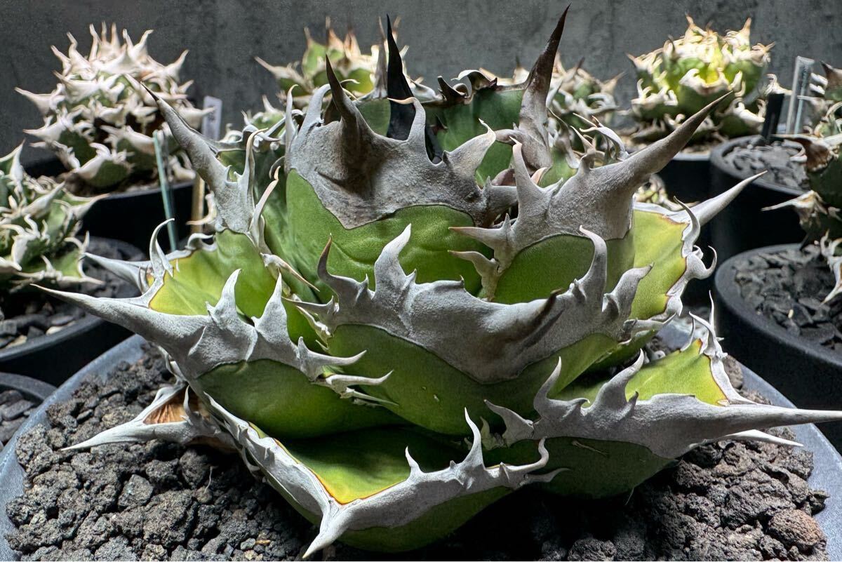 アガベ 緑犀牛の子株の出品になります。1枚目は私が育成している親株です。2枚目以降が今回の出品株となります。私のオリジナルタグも付属させます。