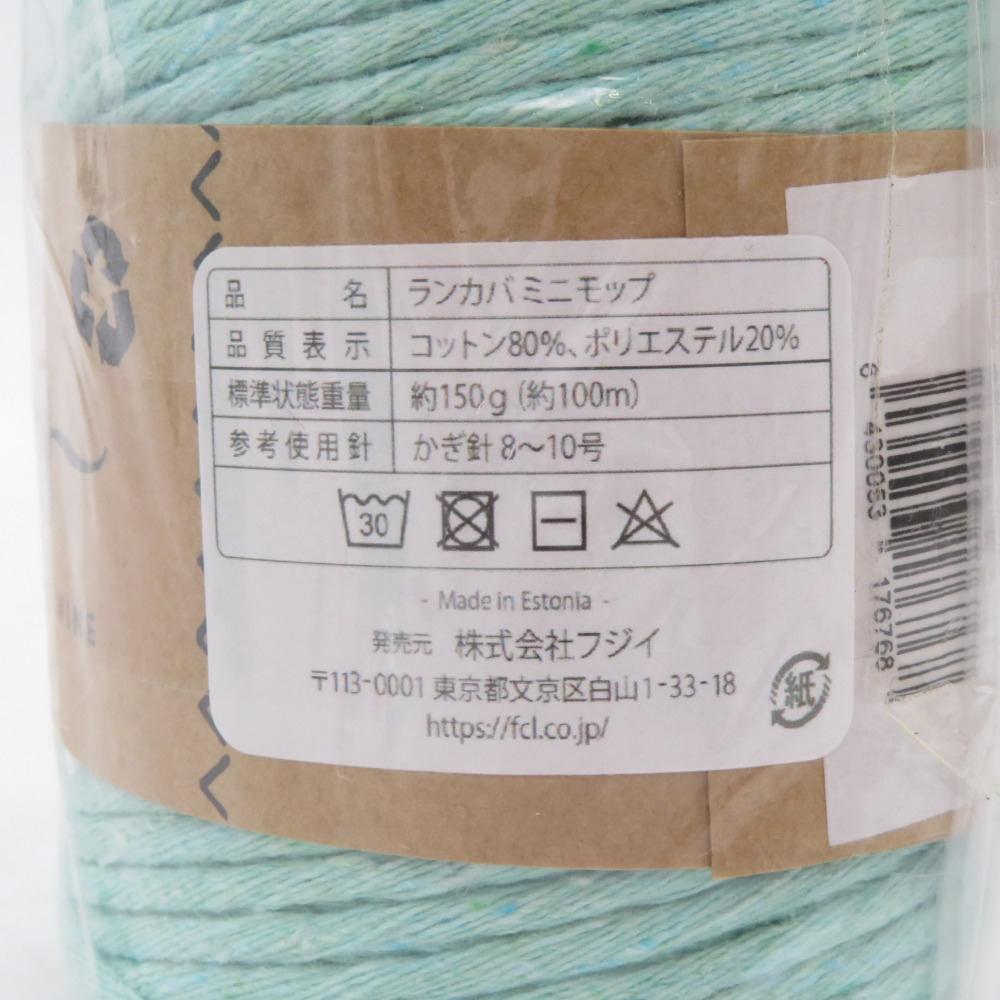 | 商品説明 | LANKAVAの糸はアパレル工場にて廃棄されていく繊維を独自の技術によって、リサイクルヤーンとして生まれ変わったエコな糸です。 ミニモップはリサイクルコットンの細い糸を何本もゆるく撚って作られた糸です。手織りや編み物など幅広くお使い頂けます。 仕立て:150g 約100m 使用針:かぎ針 8/0~10/0号 | ||